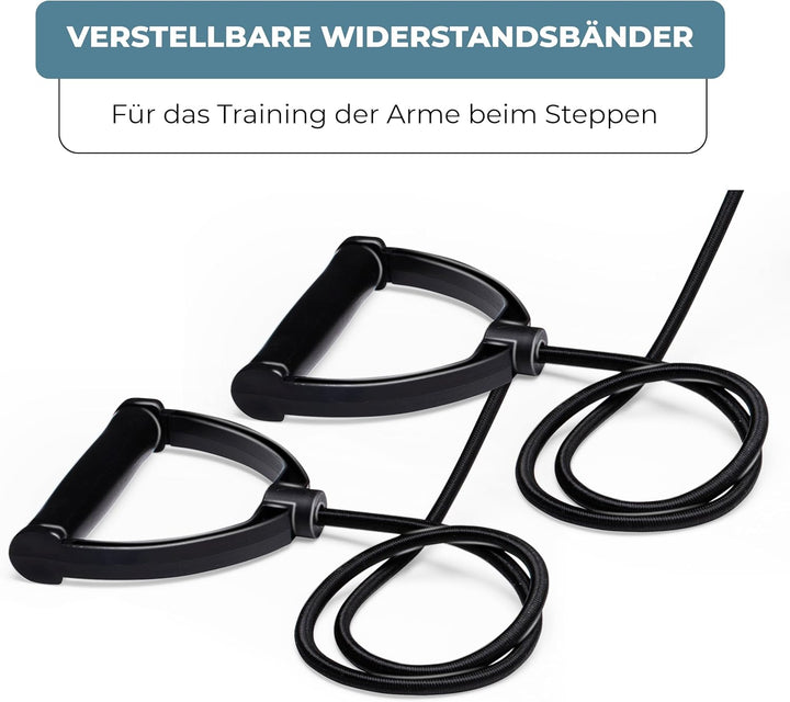 - STEPPER MIT HÄNDEN - Erreichen Sie nicht nur Ihre erforderlichen Schritte pro Tag, sondern trainieren Sie gleichzeitig Ihre Arme mit den mitgelieferten elastischen Widerstandsbändern.