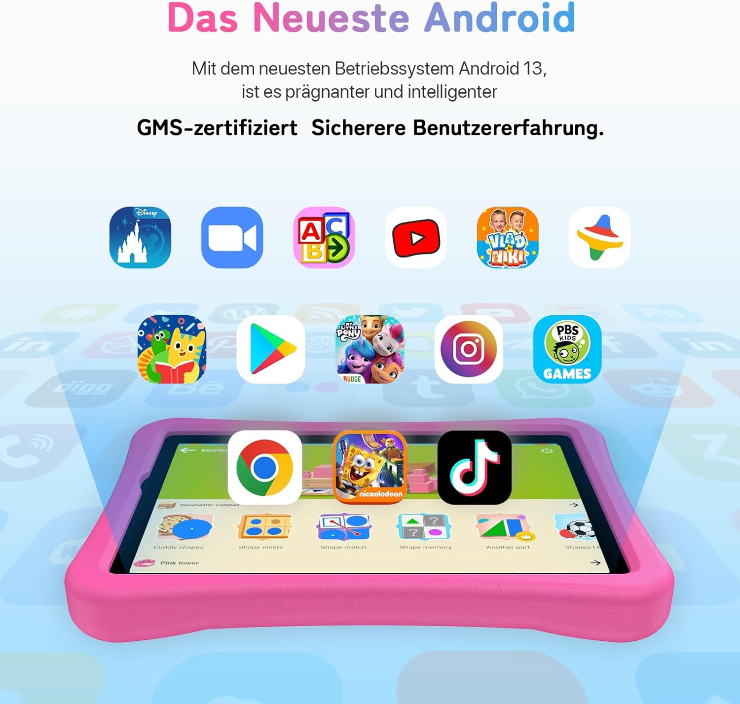 - GMS Zertifiziert&TÜV Zertifiziert&WiFi 6/BT5.0: GMS-zertifizierte UMIDIGI Tab Kinder Tablets können andere Apps wie Goo#gle Kids Space, Disney, PBS Kids, Nickelodeon und Netflix in Goo#gle Play herunterladen.Android Kinder Tablet unterstützt WiFi 6