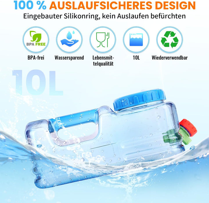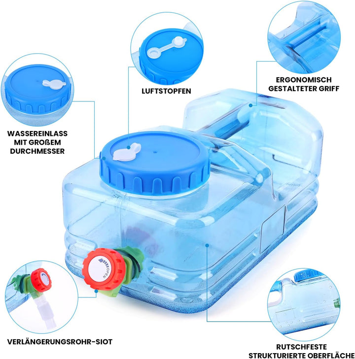- 【Anwendbare Szenarien】: Wasserkanister Mit Hahn, Wassertank für Trinkwasser im Freien oder im Haushalt. Dieser Wasserspeicher ist ein idealer Begleiter für Wohnwagen, Wohnmobile, Camping, Grillabende, Strände, Angeln oder Picknicks. Es eignet sich