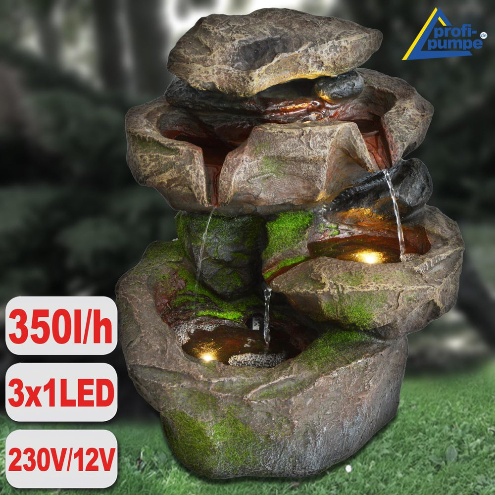 - Steckfertiger, einfach zu montierender, sofort einsatzbereiter Kaskaden-Brunnen in wirklichkeitsgetreuer Felsnachbildung mit natürlich wirkender Moos-Dekoration