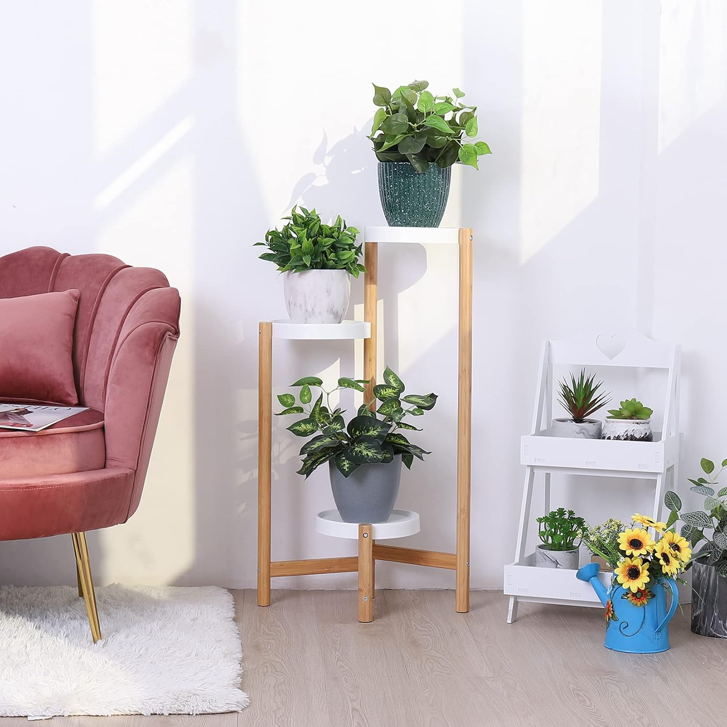 - Höhe Qualität : Der stehender Blumenständer besteht aus natürlichem und umweltfreundlichem Bambus,wurde wetterfest imprägniert, schöne Texturen, moderate Festigkeit, resistent gegen Insekten und Fäule, stabil, langlebig und Pflegeleicht.Kann jede Ablage bis 10kg belasten