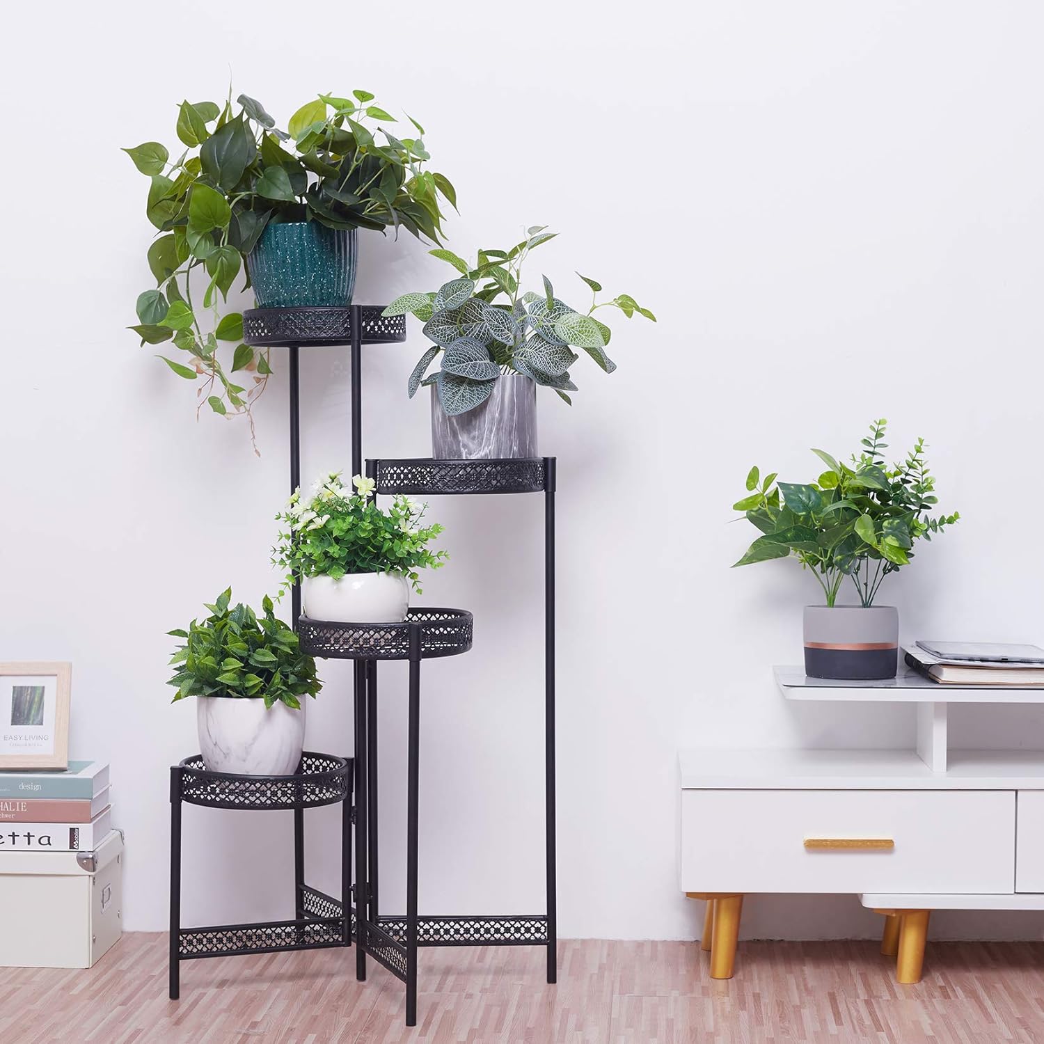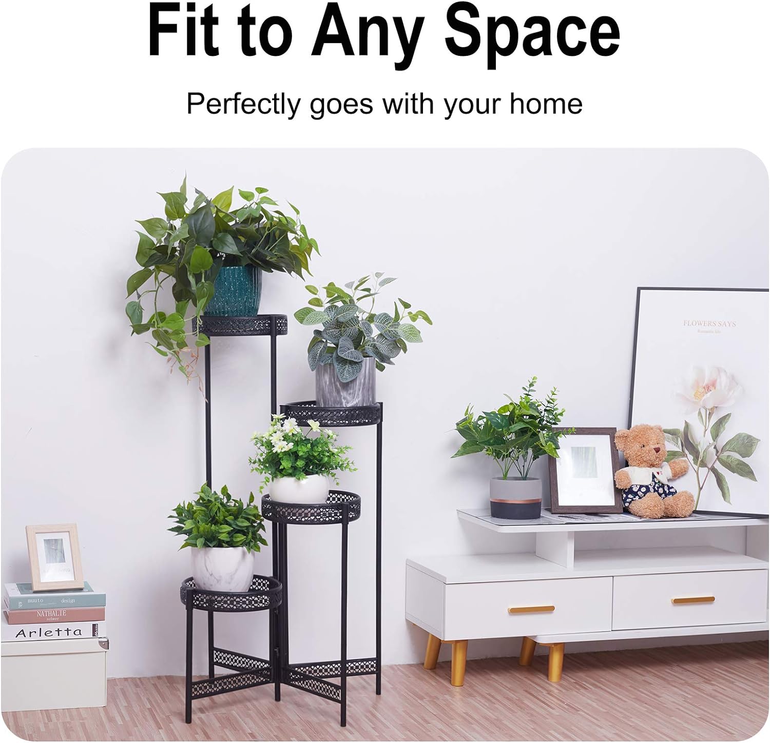 - Praktisches Design : Der faltbar Blumenständer hat eine geringe Stellfläche und kann überall platziert werden,und einfach zu aufbewahren. Der Boden der Ablage mit Entwässerungsdesign ist es nicht einfach, Wasser anzusammeln.Am unteren Rand befindet sich ein schwarzer Gummistopfen, um die Reibung und Beschädigung zwischen Eisenkunst und Boden zu verringern.