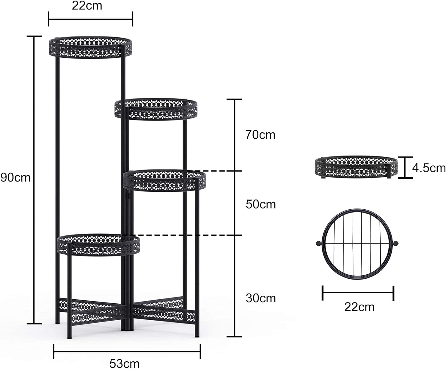 - Mehrstöckiges Blumenregal : Das Blumenregal aus Metall mit 4 Ebenen bietet reichlich Platz für Pflanzen, Blumen, Kräutern oder Deko.Wegen den unterschiedliche Höhe können Sie verschieden Pflanzen oder unterschiedliche Blumenarten stellen,und jede Pflanze kann genug Sonnenlicht erhalten, um das gesunde Wachstum der Pflanzen zu fördern