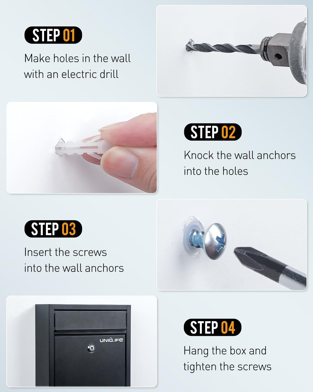 - Hohe Sicherheit: Kein unbefugter Zugriff! Ausgestattet mit einem einfachen, aber sicheren Metallschloss, kann der abschliessbare Briefkasten nur mit den mitgelieferten Schlüsseln geöffnet werden. Bewahren Sie Ihre Inhalte immer sicher auf, um deren