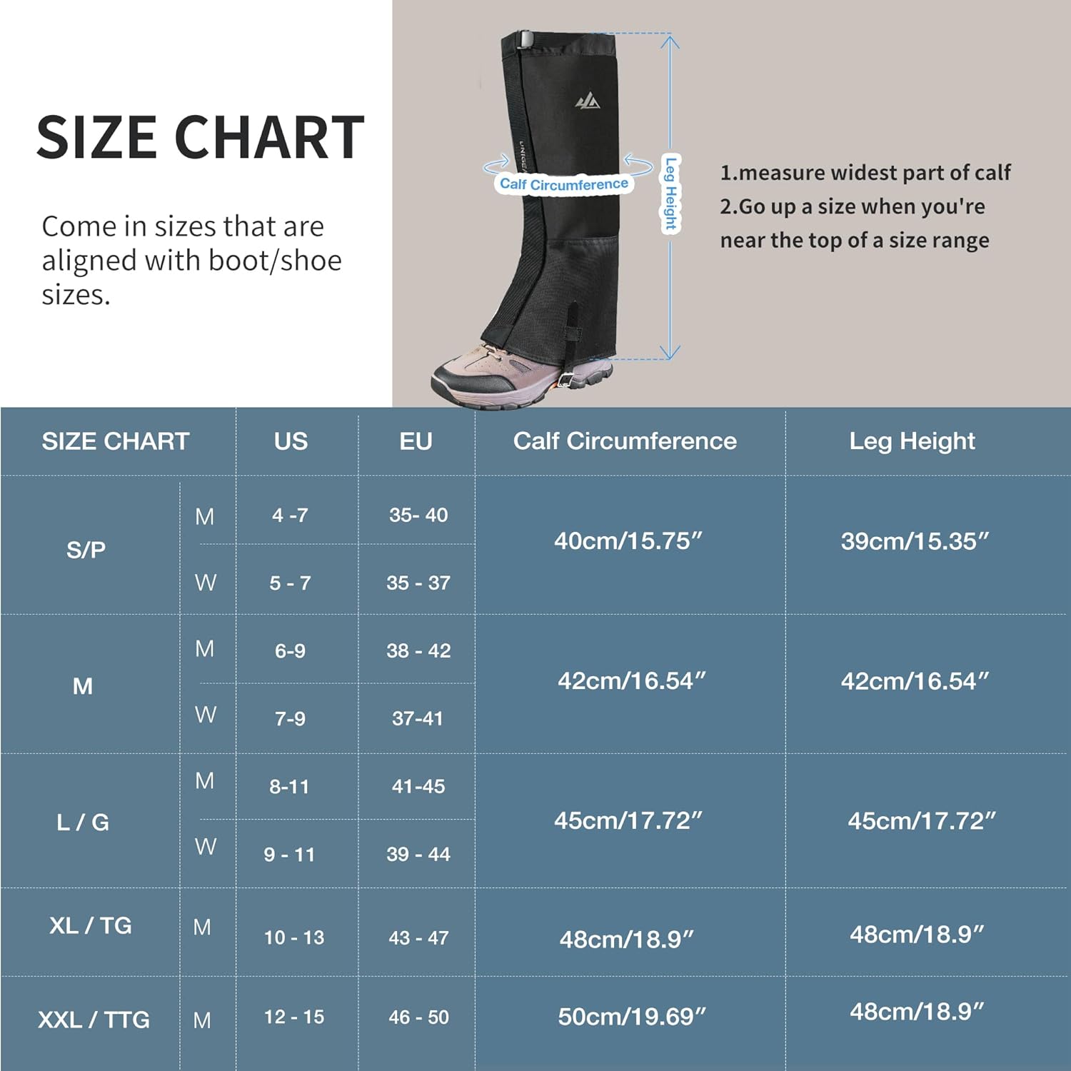 - ⛄HALTBARKEIT: Der obere Teil der Gamaschen besteht aus TASLON und ist normalerweise leicht und atmungsaktiv. Atmungsaktiv, Schweiss oder Wasserdampf absorbieren können. Feuchtigkeitsdurchlässigkeit >8000/㎡.24hrs. Es ist hilfreich, Ihr Bein trocken