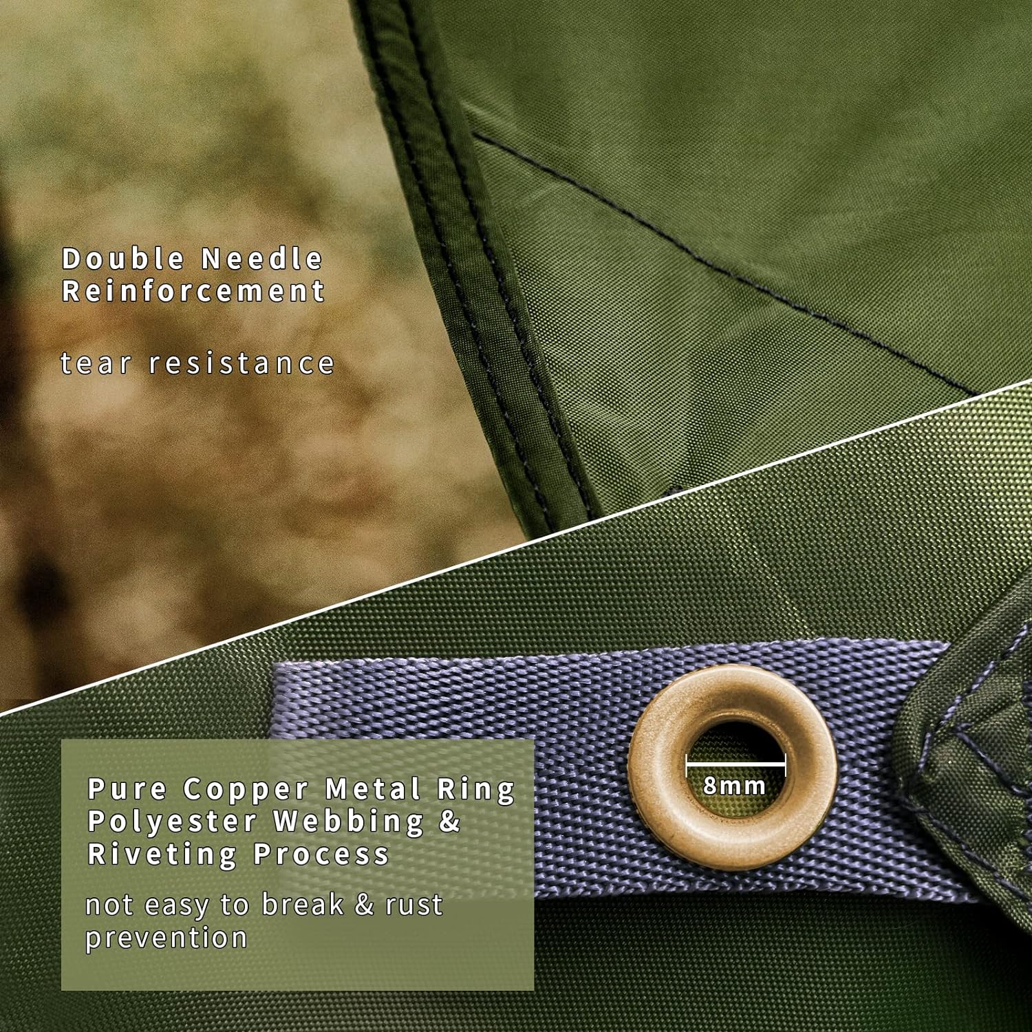 • Wasserdicht & Sonnenschutz: Ganze Plane ist PU beschichtet, verfügt über hohe Wasserbeständigkeit, Wassersäule 3000 mm, keine Angst vor Regen, Gewitter, Schnee, Sturm oder starkem Wind. Darüber hinaus sind die Nadellöcher geklebt, um ein Eindringen