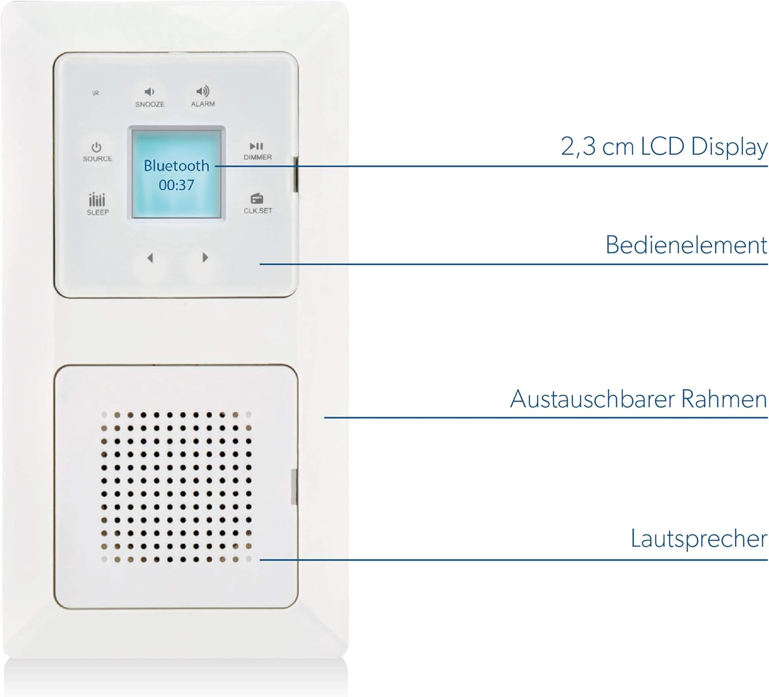 - PRAKTISCH: Einfach eigene Playlist über Bluetooth (Reichweite: 8-10 Meter) per Smartphone mit dem Unterputz-Radio abspielen