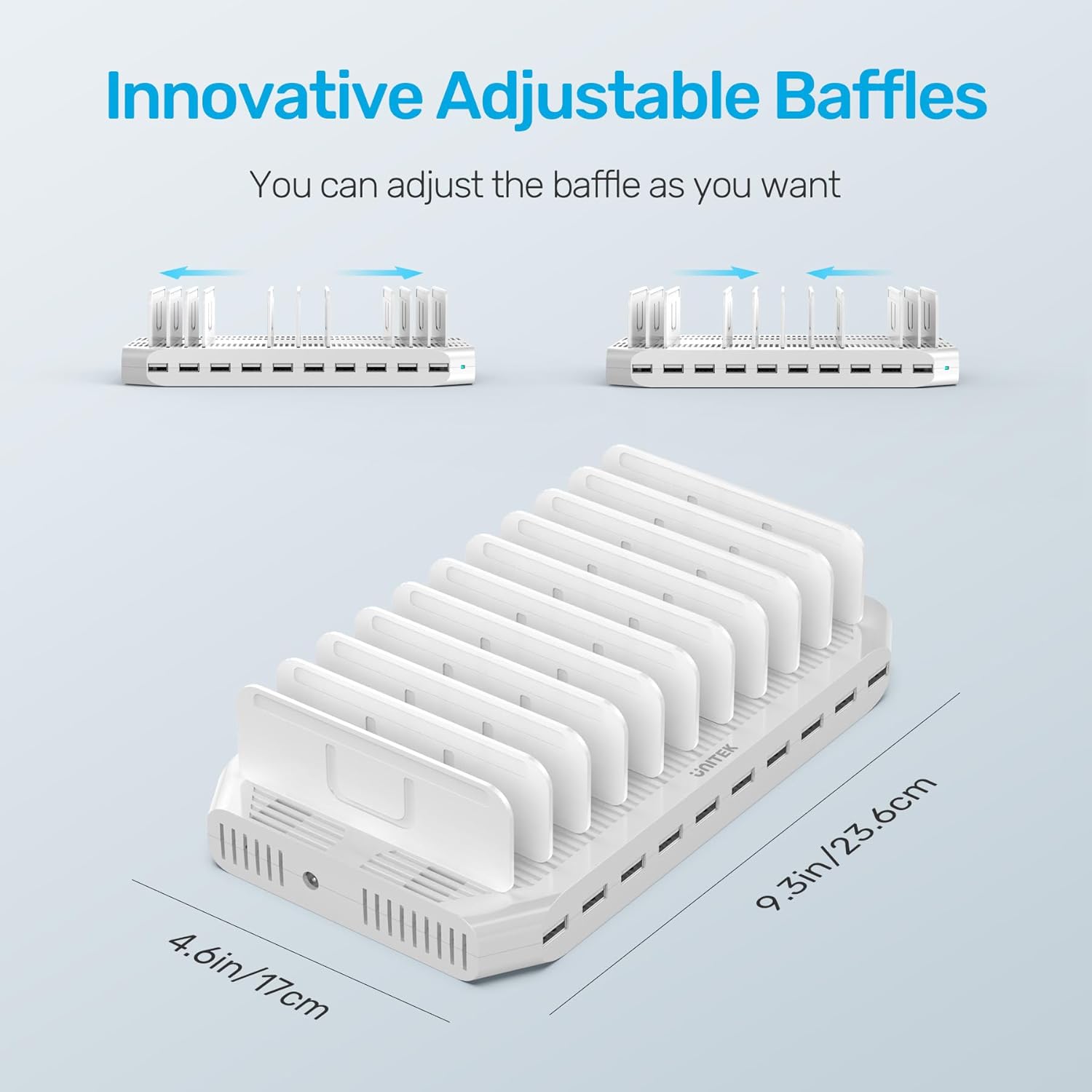 Unitek 60W Handy Ladestation Mehrfach 10 Ports, USB Ladestation für mehrere Geräte mit SmartIC Techn