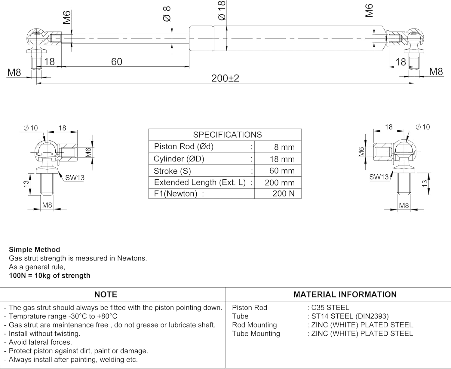 - Ausgestattet mit Kugelgelenk-Endstücken für einfache Montage