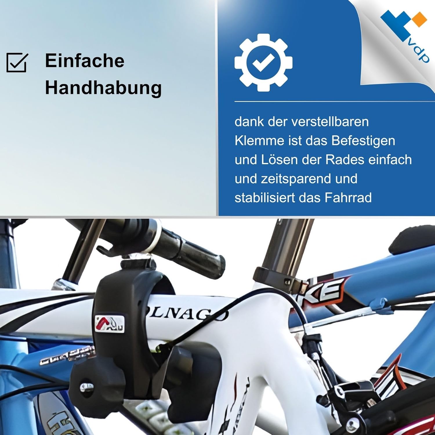- Einfache Handhabung - dank der verstellbaren Klemme ist das Befestigen und Lösen der Rades einfach und zeitsparend und stabilisieren das Fahrrad, so dass das Gewicht gleichmässig auf den Träger verteilt wird, Dies reduziert Belastungen auf das Auto