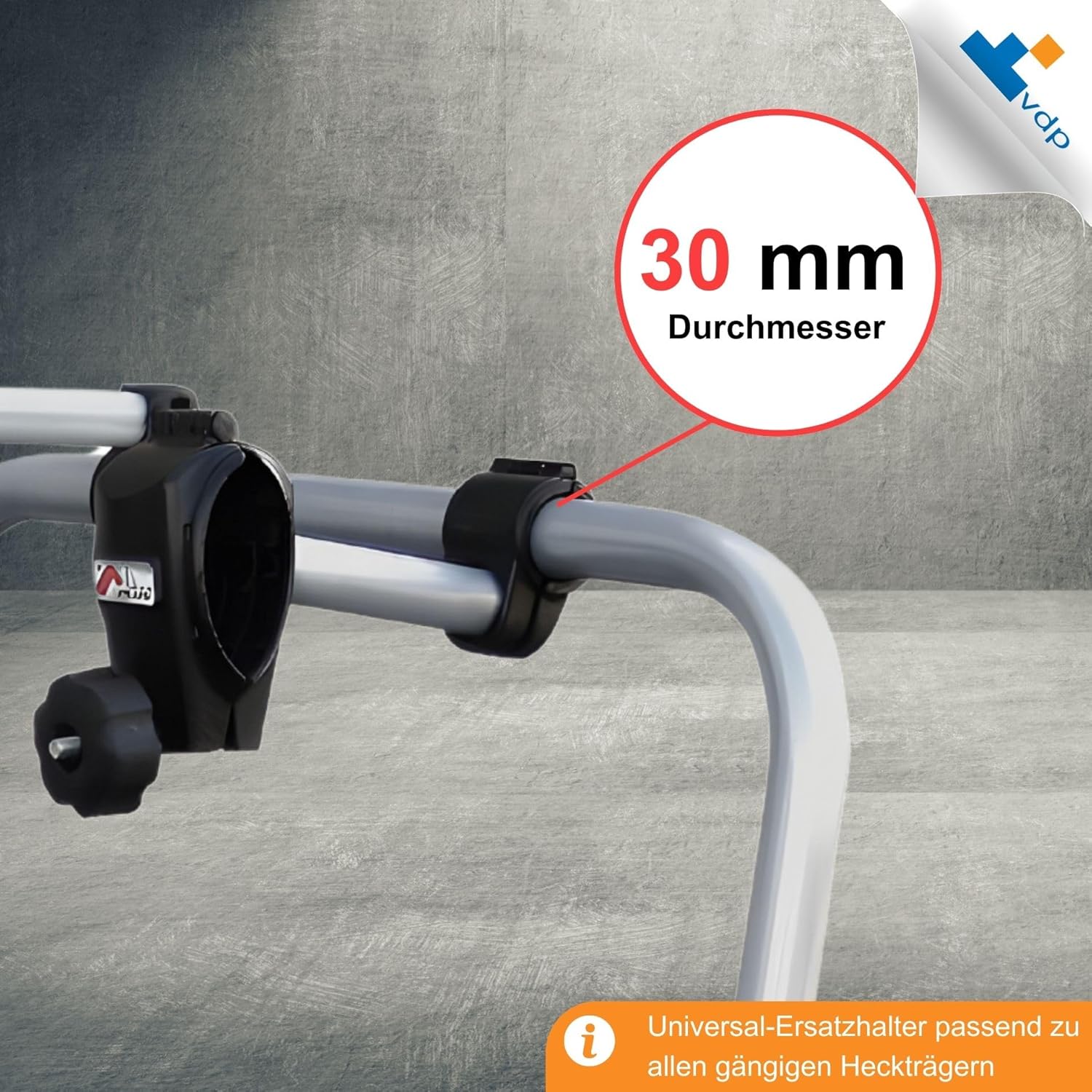 - technische Daten - Rahmenhalterung am Fahrrad für 1 Rad | Material: Aluminium (Stange), Kunststoff (Greifarme) | Gesamtlänge: ca. 30 cm | Greiflänge: ca. 24 cm | U-Bügel: Ø 30mm | Ø Rahmen rund: 30-50mm | Ø Rahmen oval: min. 30x30mm, max. 50 x 70mm