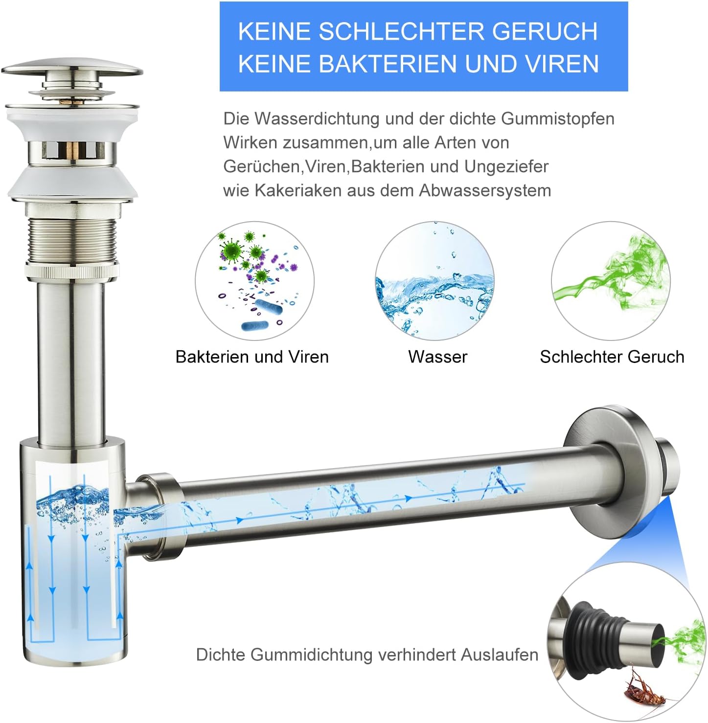 - 【Verhindern Sie Verstopfungen】Einfaches Öffnen des Ablaufs am Geruchsverschluss. Mit wenigen Handgriffen lässt sich der Waschbecken Abfluss öffnen und reinigen. Regelmässiges Reinigen verhindert verstopfte Abflüsse und unangenehme Gerüche