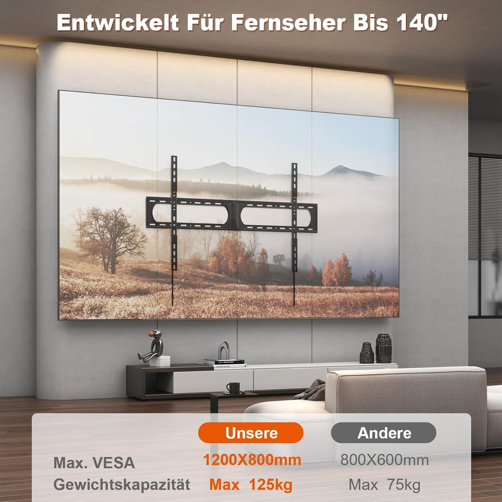 - Universelle TV-Wandhalterung: passt für Fernseher und digitale Bildschirme von 37 bis 140 Zoll. Hält bis zu 125 kg und ist dank ultraflachem Design besonders platzsparend. VESA-kompatibel mit den Massen: