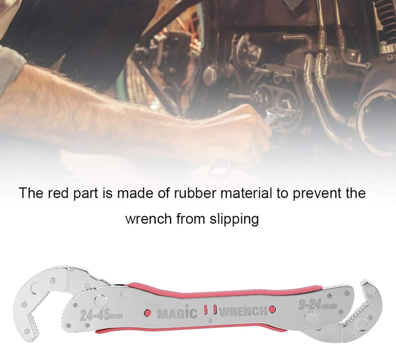 - 【FALLENDE VERHINDERUNG】 Der rote Teil des Schraubenschlüssels besteht aus Gummimaterial, sodass Sie verhindern können, dass der Schraubenschlüssel herunterfällt.
