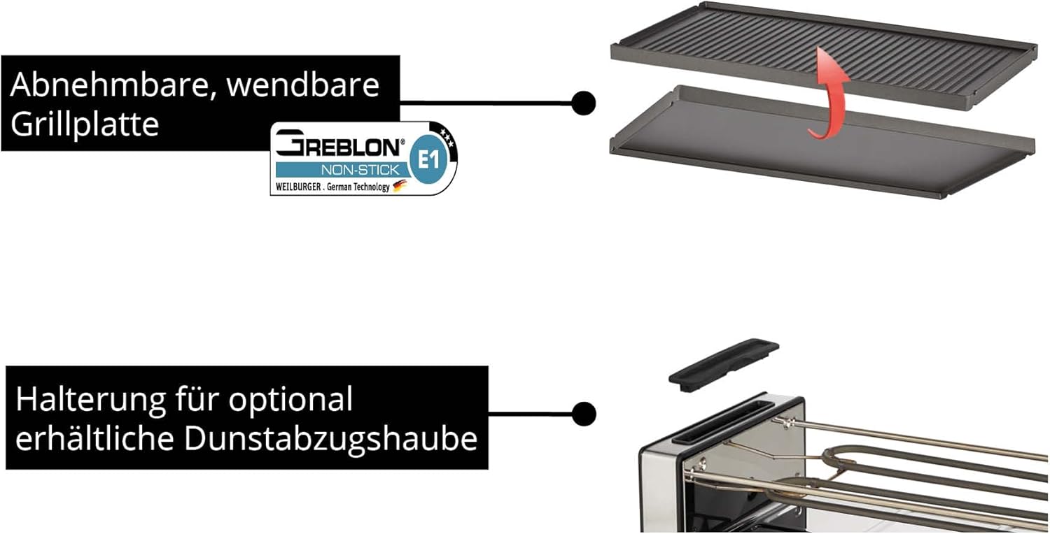 - Raclette für bis zu 8 Personen / Halterung für optional erhältliche Dunstabzugshaube