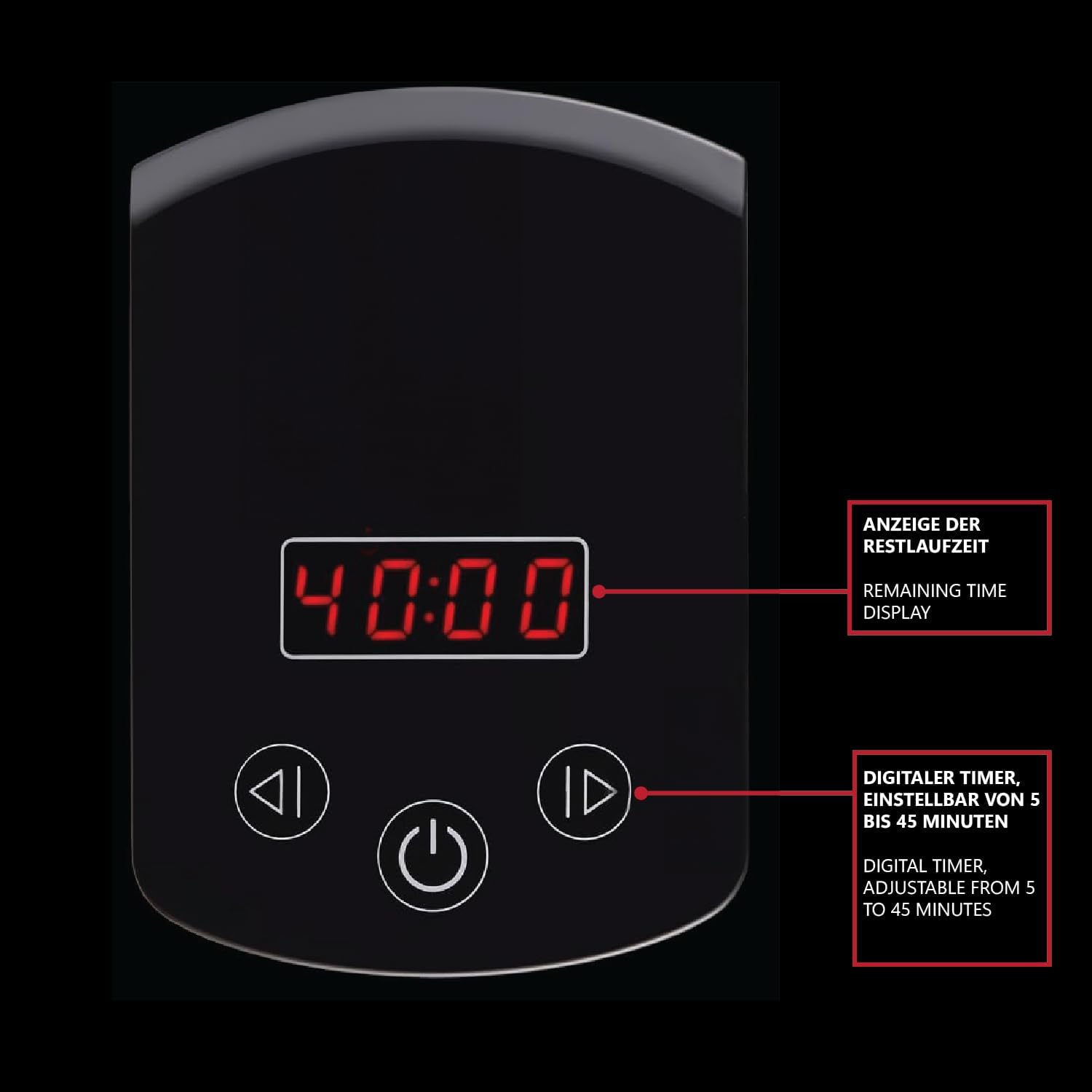 - Eisbehälter für 8 bis 12 Stunden im ***-Gefrierfach (-18°C) vorgefrieren / Digitaler Timer, einstellbar von 5 bis 45 Minuten