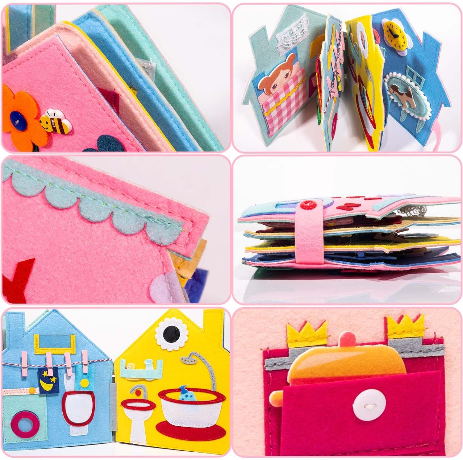 - Spielzeug für die frühe Bildung: Das Filz-Beschäftigungsbuch wurde mit vielseitigen Lernfähigkeiten für die frühe Bildung von Kindern entwickelt und umfasst Fertigkeiten des täglichen Lebens, grundlegende Techniken, Freizeitspiele usw. Die