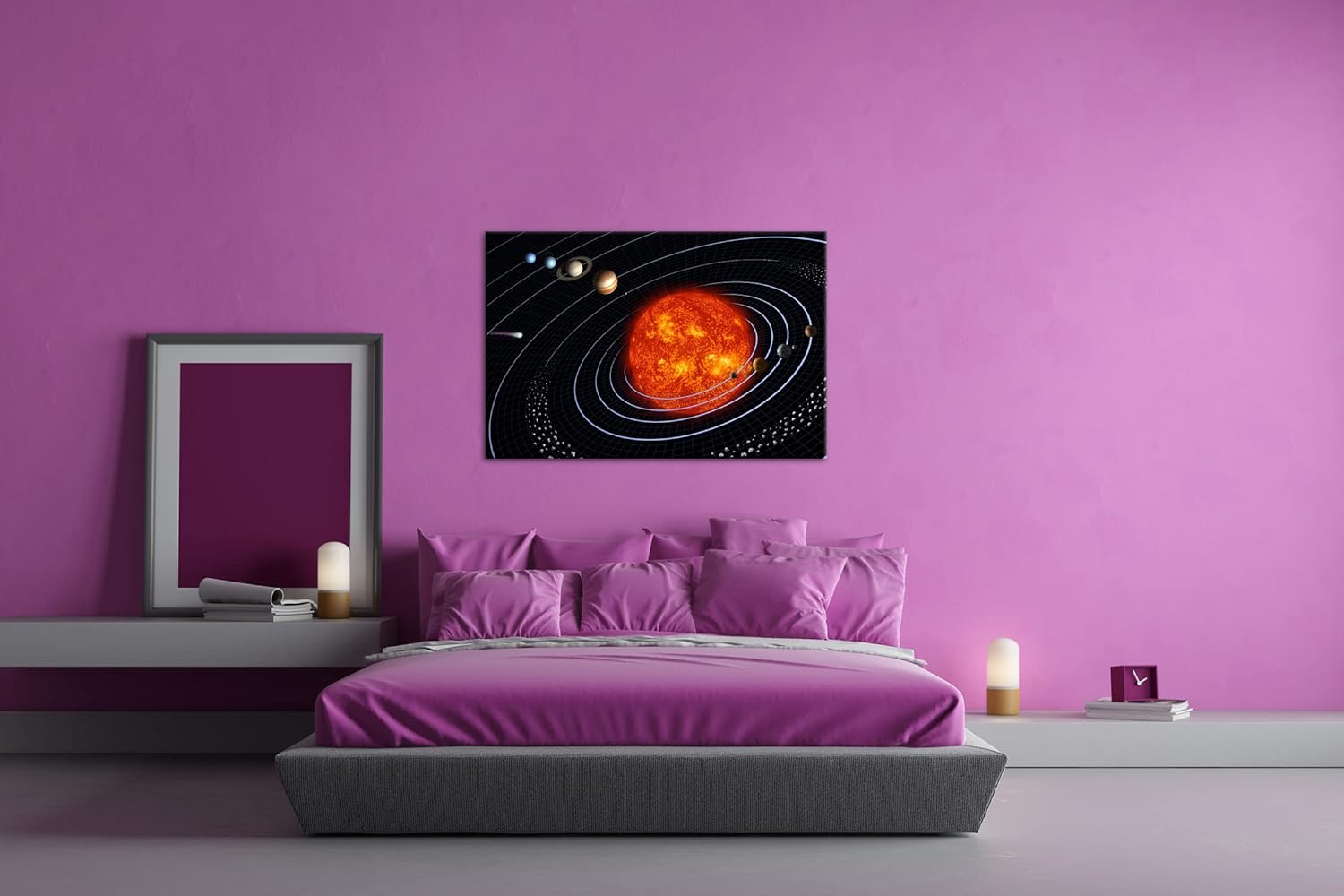 deyoli unser Sonnensystem Format: 80x60 als Leinwandbild, Motiv fertig gerahmt auf Echtholzrahmen, H