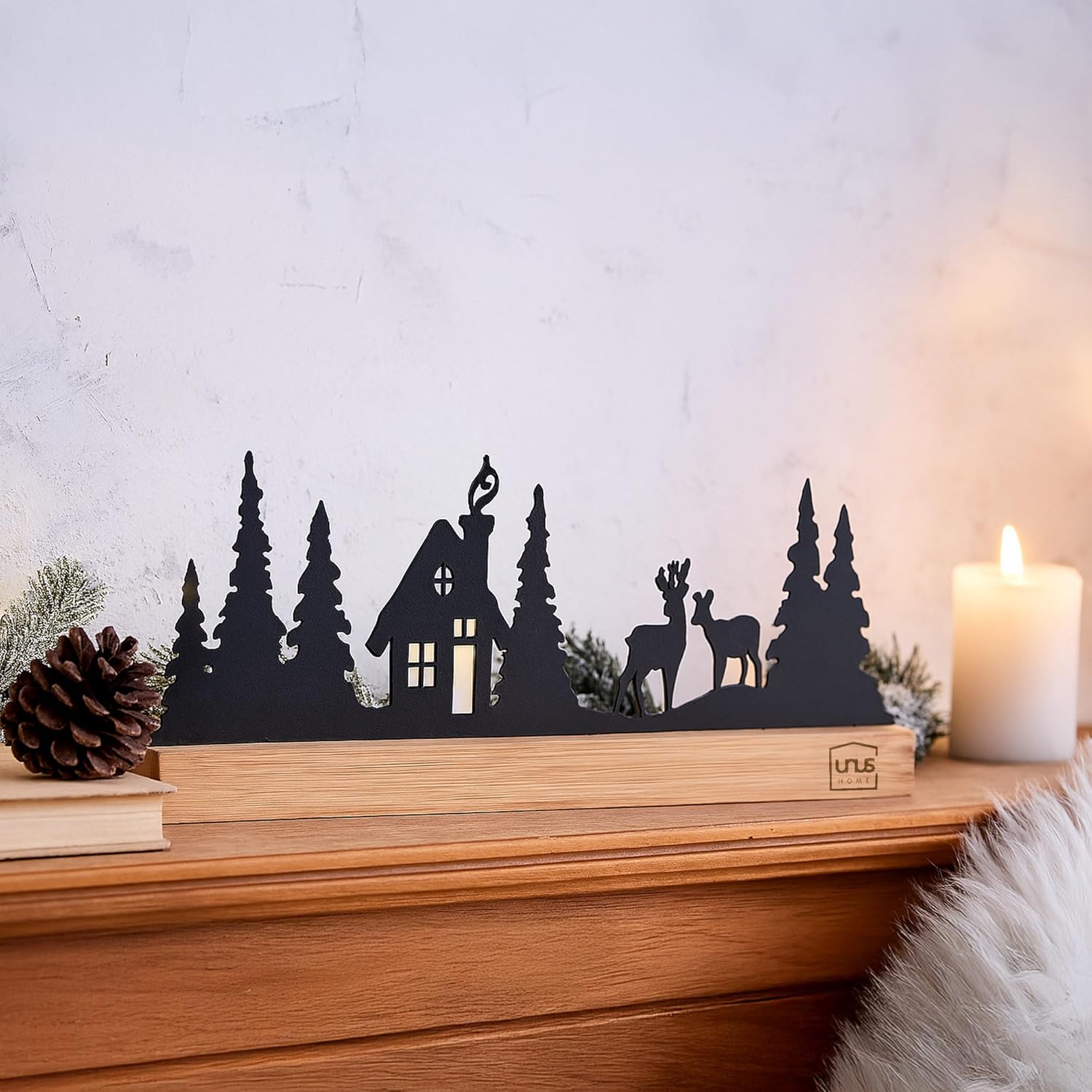 - WINTERLICHE IDYLLE: Haus, Bäume und Rehe als filigrane Silhouette – schafft eine ruhige, gemütliche Stimmung