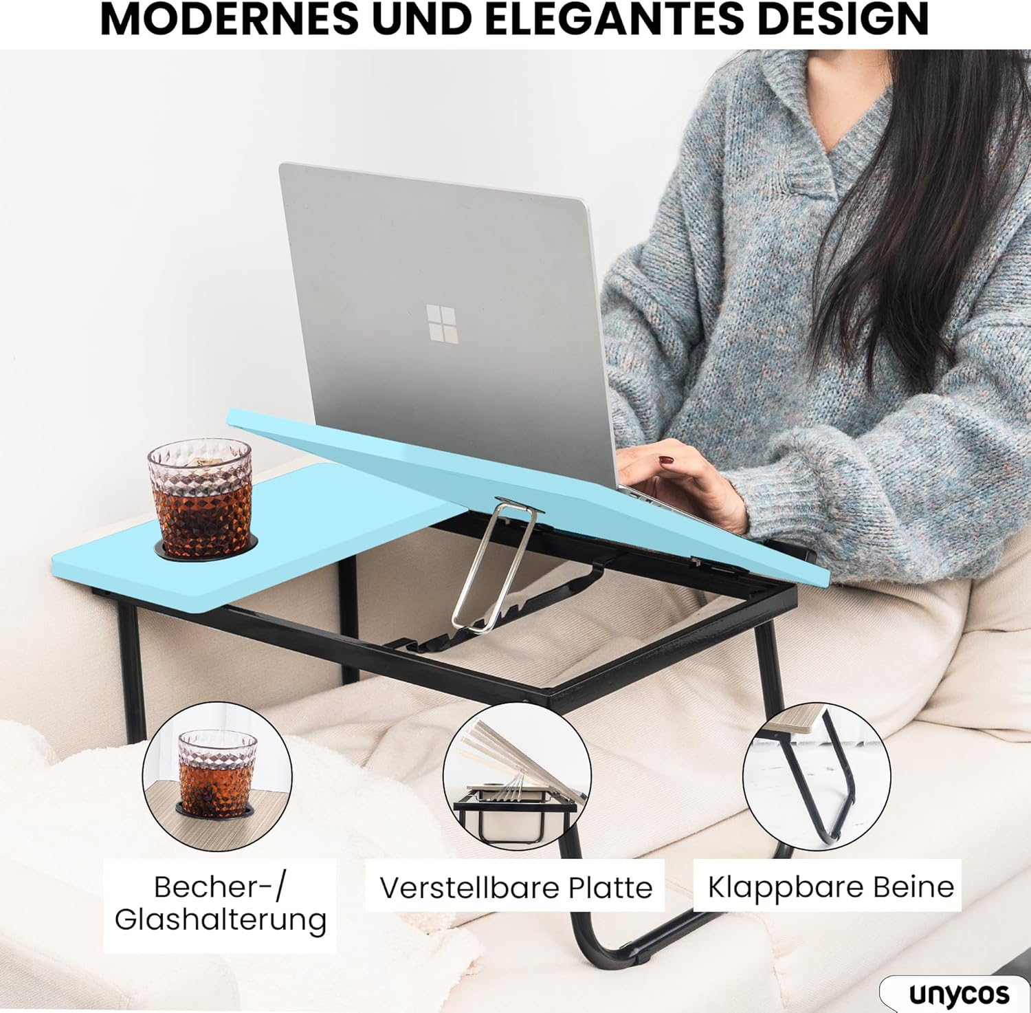 unycos - Klappbarer Laptoptisch - Multifunktionaler Betttisch, Ideal zum Essen, Arbeiten, Lesen, Sch