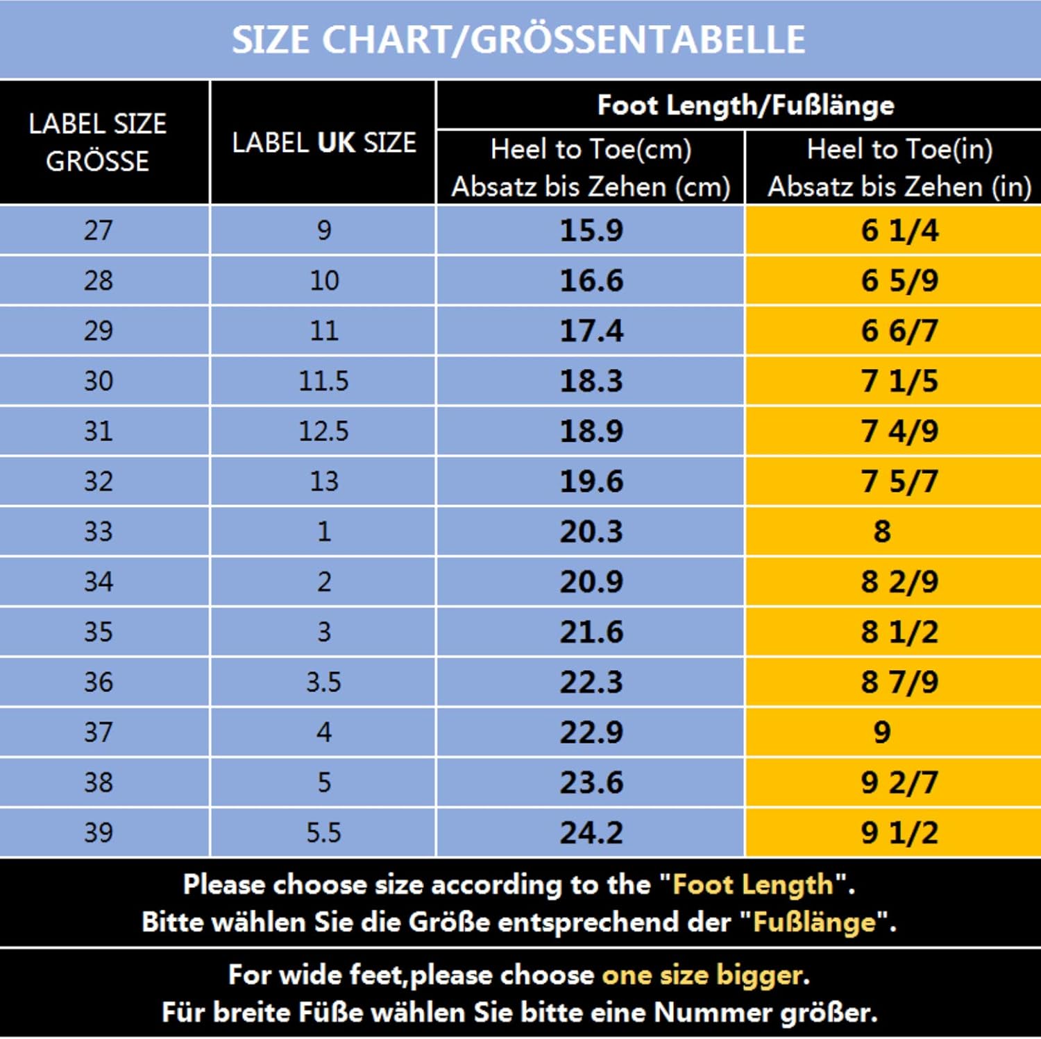 - Freundliche Erinnerung: Wählen Sie die Grösse nicht nach UK-Grösse. Please measure kid's foot firstly, then find out the same or the most nearly "FOOT LENGTH" in UOVO size chart (see the last photo) and find out the corresponding UK size to make order.
