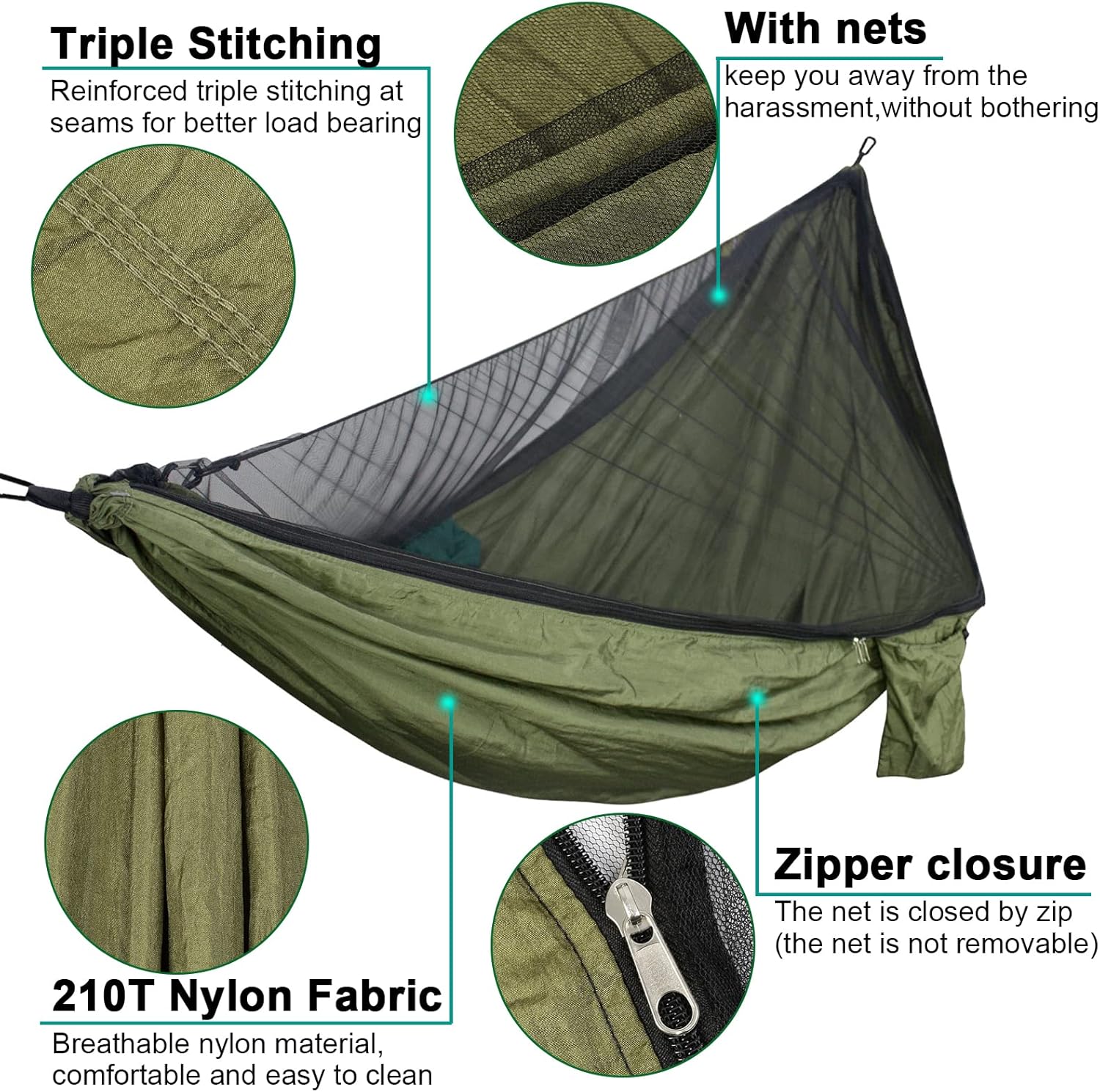 UPhitnis Hängematte Outdoor mit Moskitonetz 600lb Traglast Atmungsaktiv Ultraleicht Fallschirm Nylon