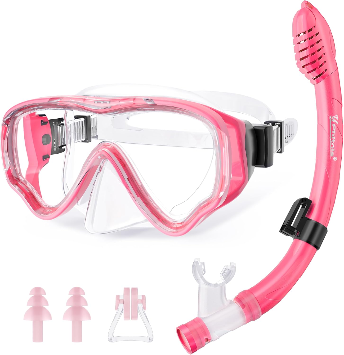 UPhitnis Schnorchelset Kinder - Taucherbrille Anti-Fog und Trocken Schnorchel - Anti-Leck Tauchmaske