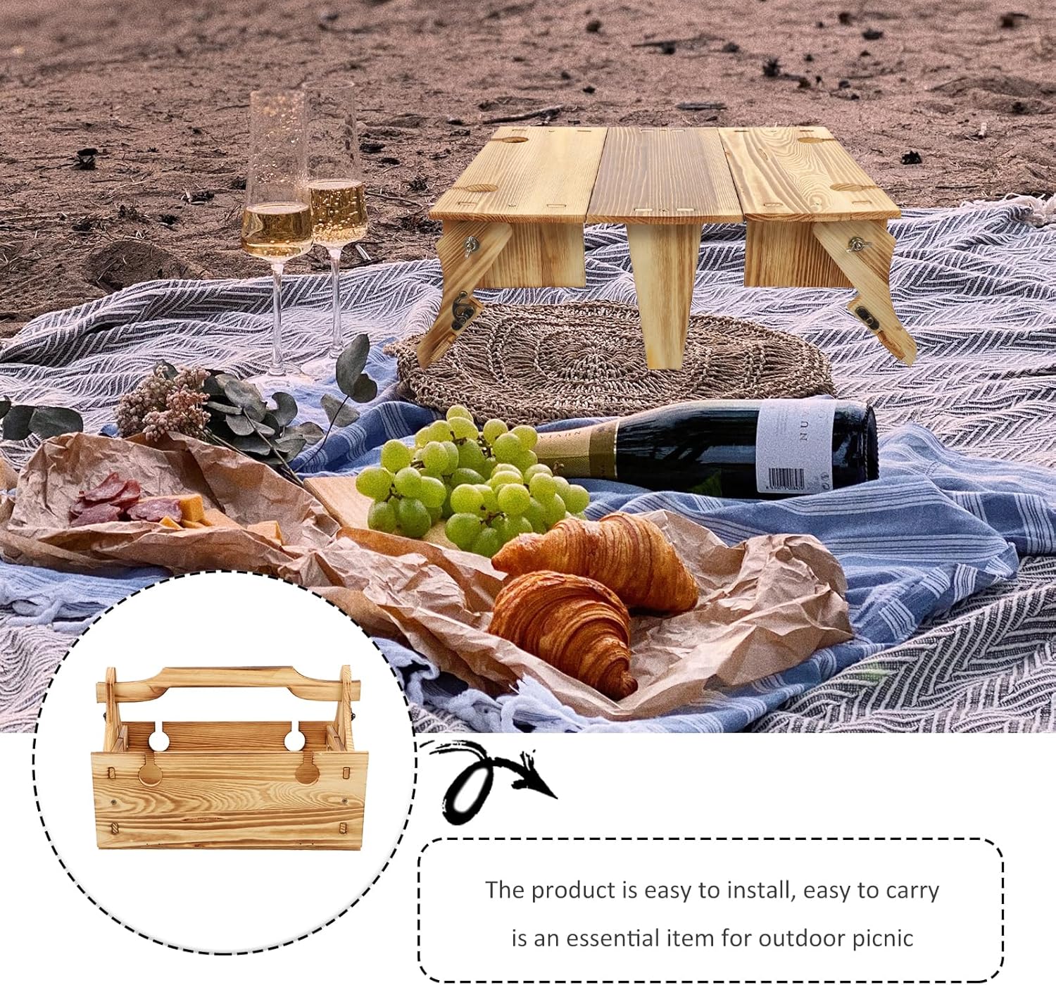 UPKOCH Picknick Holzklapper Picknickkorb Tisch: Tragbarer Wein Picknicktisch 2- In- 1 Picknicktisch