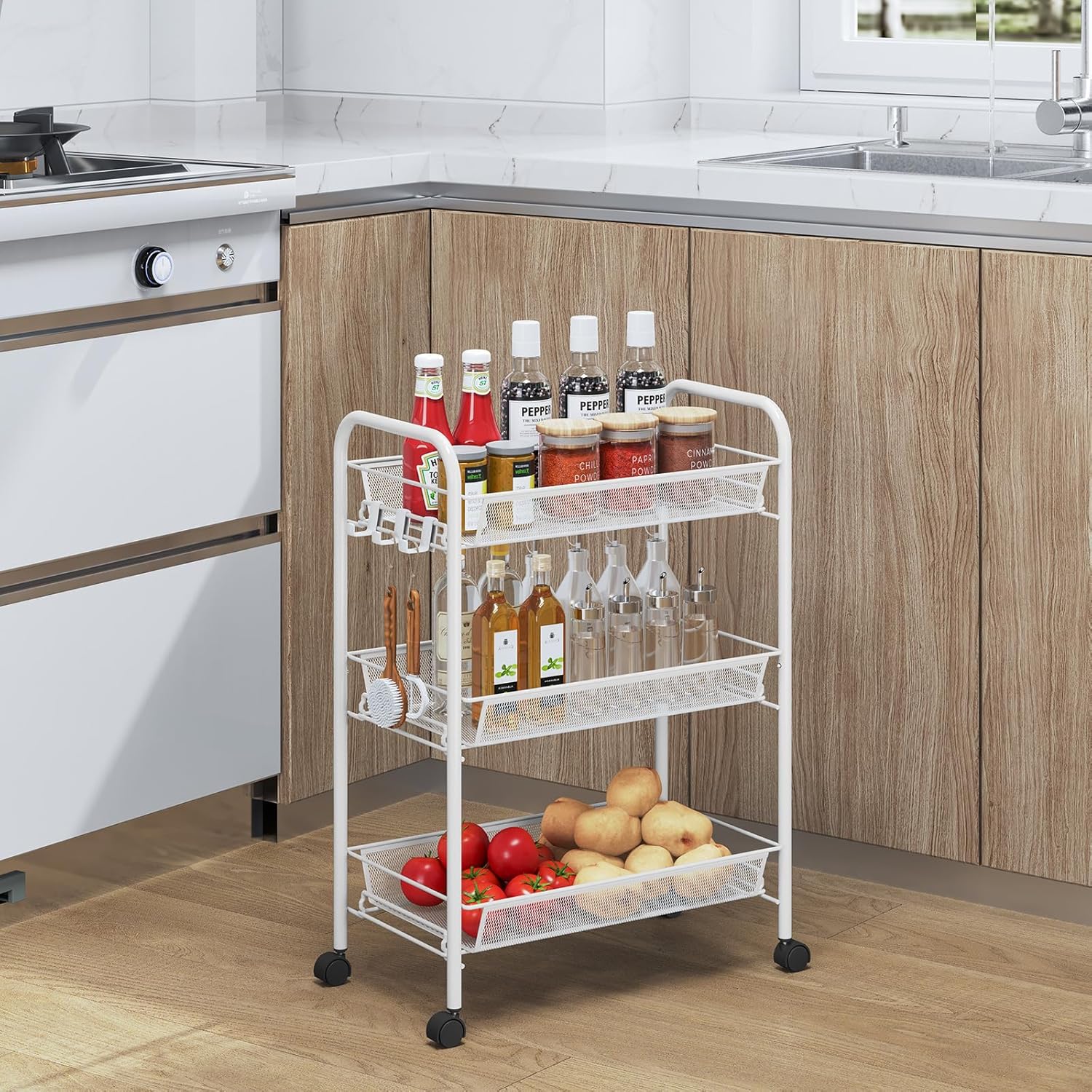 Urackify 3-stöckiger Rollwagen, Multifunktionaler mobiler Küchenwagen für Bad, Küche & Waschküche. R