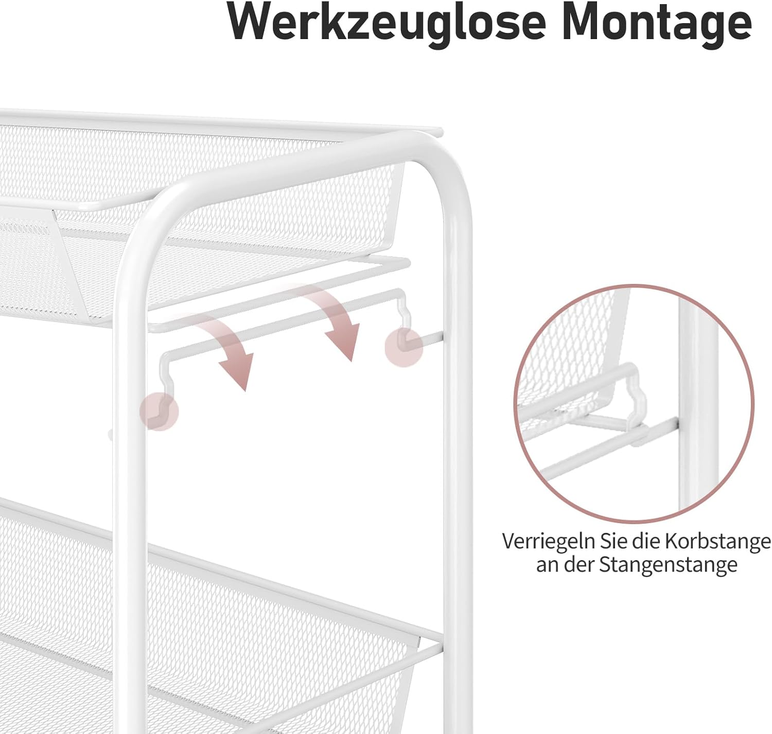 • 【Hochwertige Qualität】Der Netz-Aufbewahrungswagen besteht aus hochwertigem Metallmaterial. Der stabile Rahmen und das rostbeständige Verfahren machen ihn langlebig. Der ergonomische Griff und die robusten Stangen verformen sich nicht leicht, und
