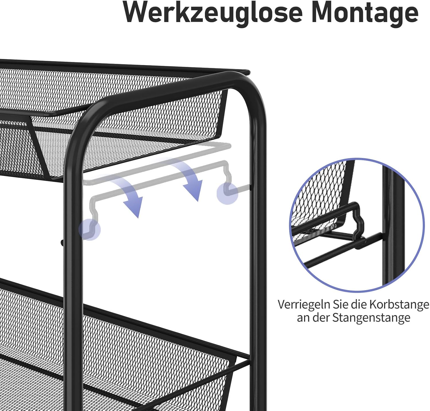 - 【Hochwertige Qualität】Der Netz-Aufbewahrungswagen besteht aus hochwertigem Metallmaterial. Der stabile Rahmen und das rostbeständige Verfahren machen ihn langlebig. Der ergonomische Griff und die robusten Stangen verformen sich nicht leicht, und