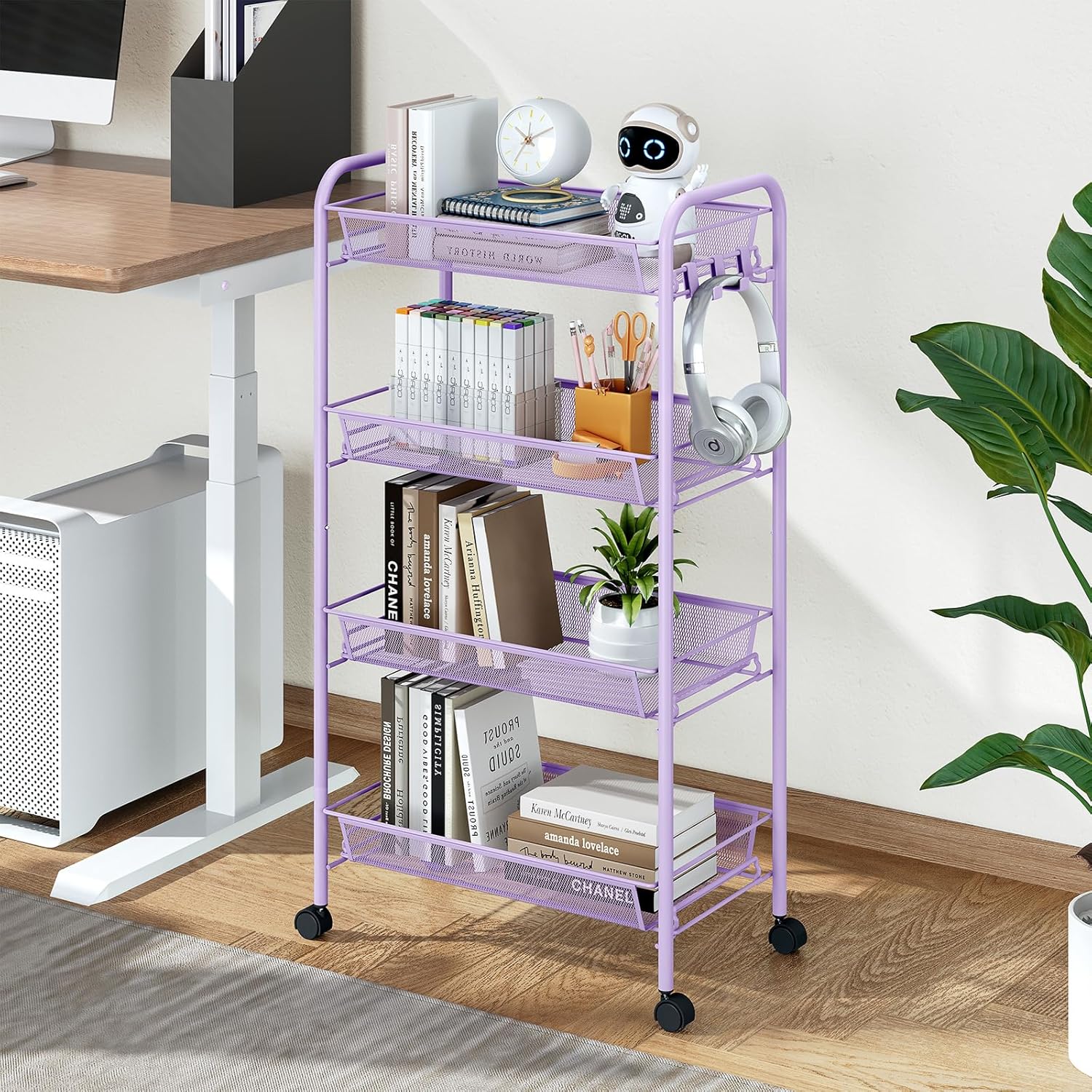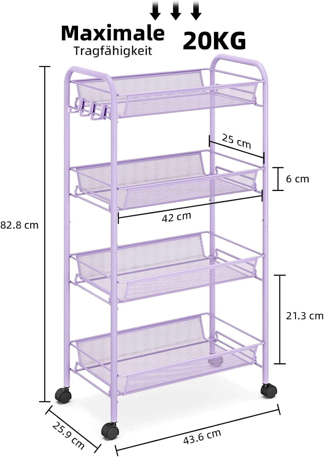 - 【Einfach zu bewegen】Der mobile Aufbewahrungswagen ist mit 4 Gummirädern ausgestattet, die sich um 360 Grad drehen und flexibel bewegen lassen. Er rollt sanft und ist super leise. Das U-förmige Griffdesign erleichtert das Bewegen, selbst wenn