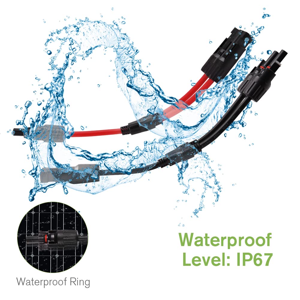 - 🥢【Wasserdicht】: Das Solarpanelkabel ist mit einem wasserdichten Ring ausgestattet, wasserdicht IP67. Der IP67-Schutz schützt den Stecker vor schädlichem Staub und Wasser, damit er ordnungsgemäss funktioniert. Es ist perfekt für die