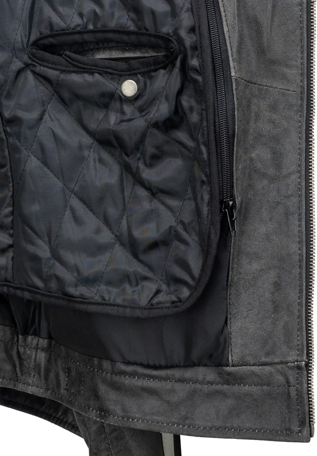 - 2 PRAKTISCHE INNENTASCHEN: Wir haben nie genug Platz auf unserem Motorrad ... das wissen wir alle! Unsere Biker Lederjacke verfügt über 4 Aussen- und 2 Innentaschen, um Ihre wertvollsten Gegenstände absolut sicher und vor Witterungseinflüssen