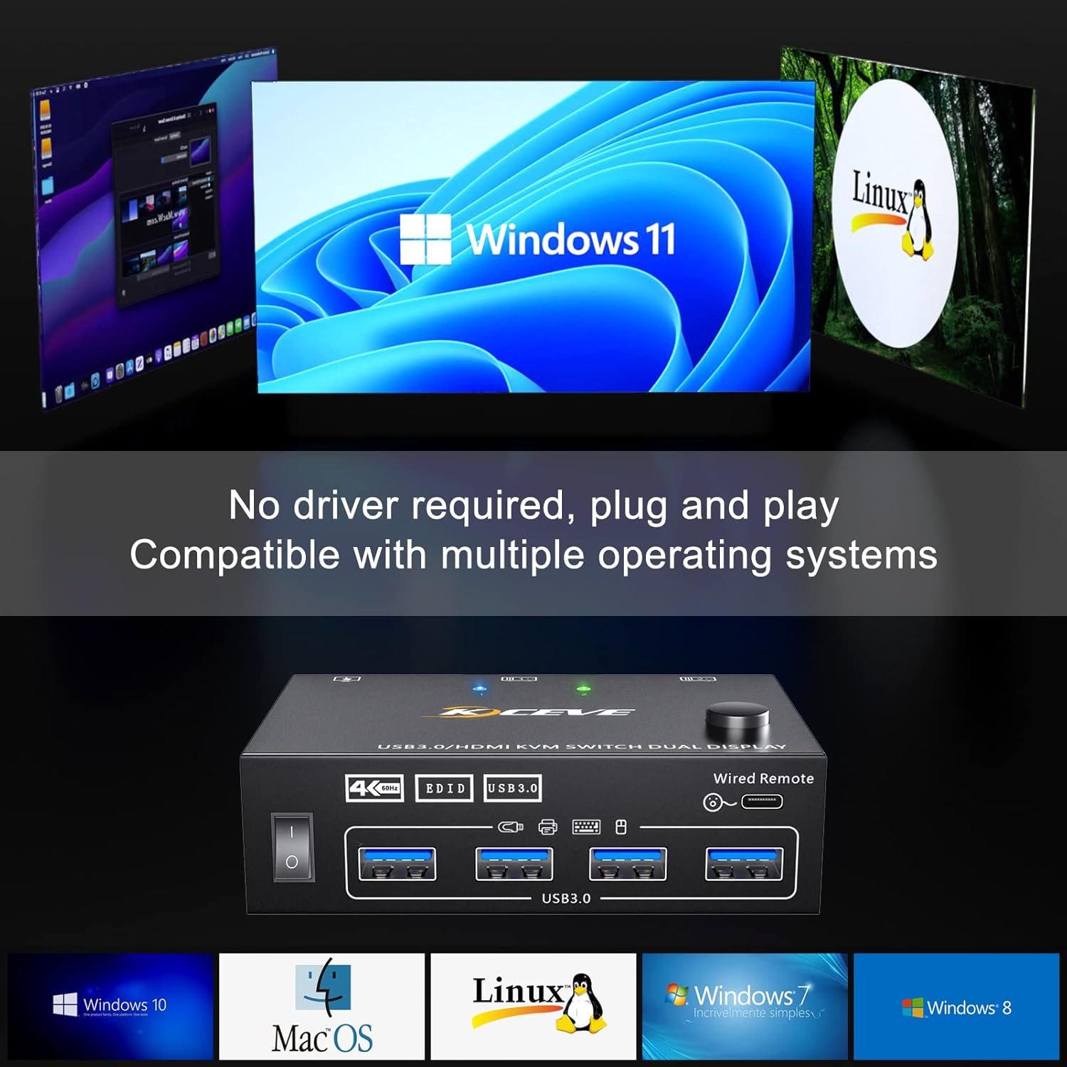 - 【Mit EDID-Emulator-Funktion】 Jeder Eingangsport dieses Dual-Monitor-KVM-Switch verfügt über einen EDID-Emulator, der sicherstellt, dass der Computer beim Zurückschalten immer die richtigen Anzeigeinformationen hat. Kompatibel mit einer Vielzahl