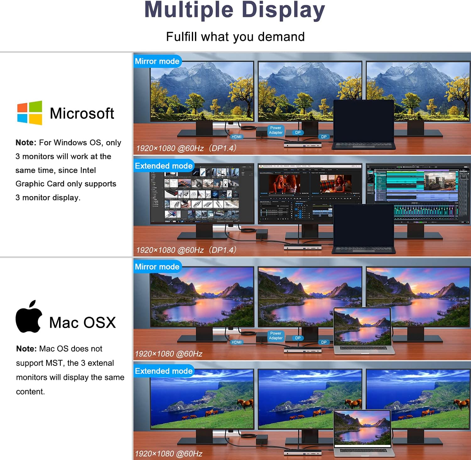 - Dieses usb c laptop dock ist kompatibel mit allen thunderbolt 3/4 Geräten. Wie Dell XPS 13/15/17,HP Spectre x2/HP Spectre x360,Lenovo Yoga 720/910/920/930,Surface Pro 7/X/Go/Laptop 3,MaBook Pro Air 2022-2018 etc. Bitte vergewissern Sie sich, dass Ihre