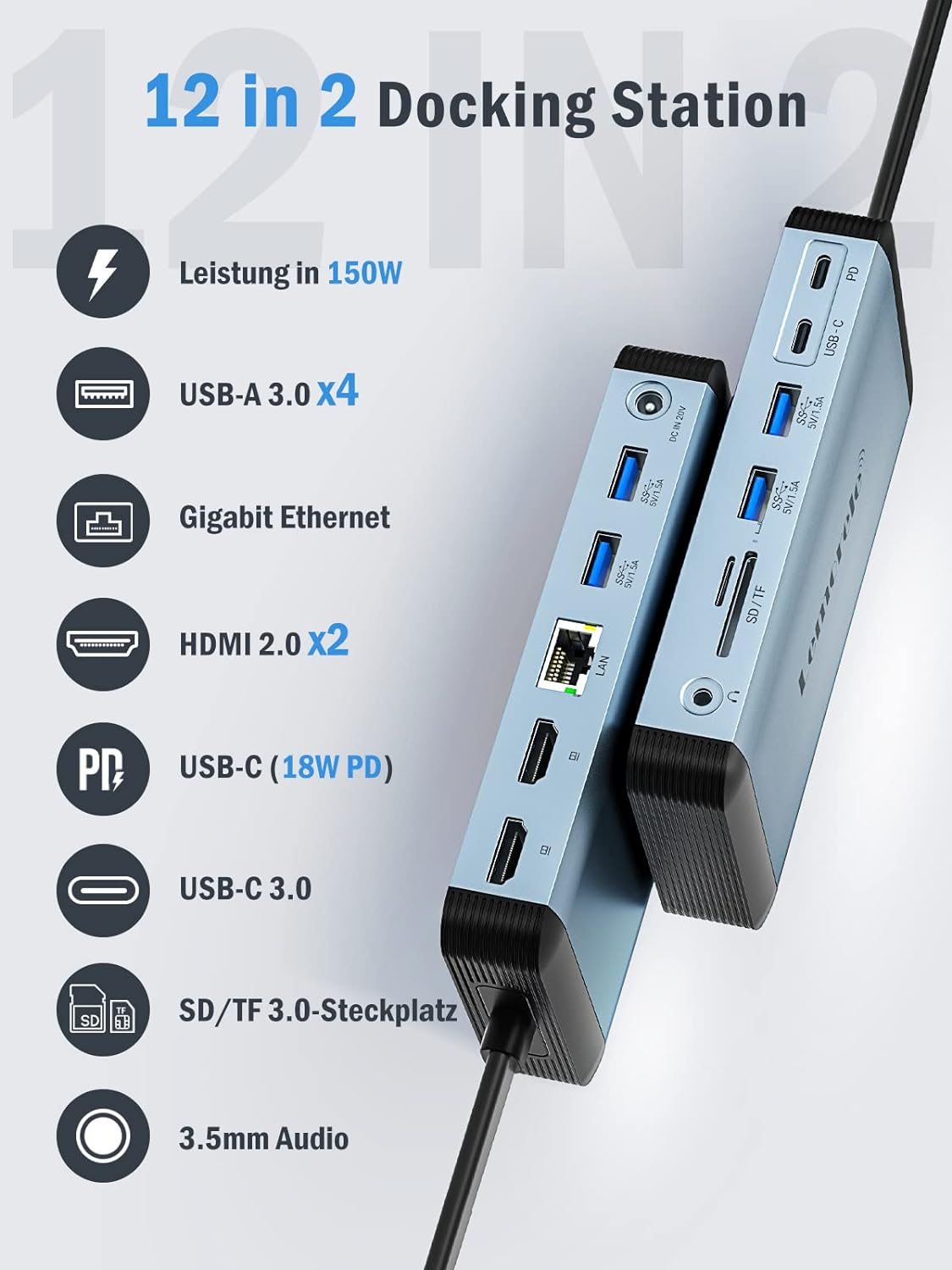 - 【12 in 2 Dockingstation für MacBook】Die Lemorele USB-C-Docking station ist für das erweiterte Display von Macbooks konzipiert; Plug and Play, Keine Software-Installation erforderlich, Docking Station USB C mit 4K@60Hz Dual