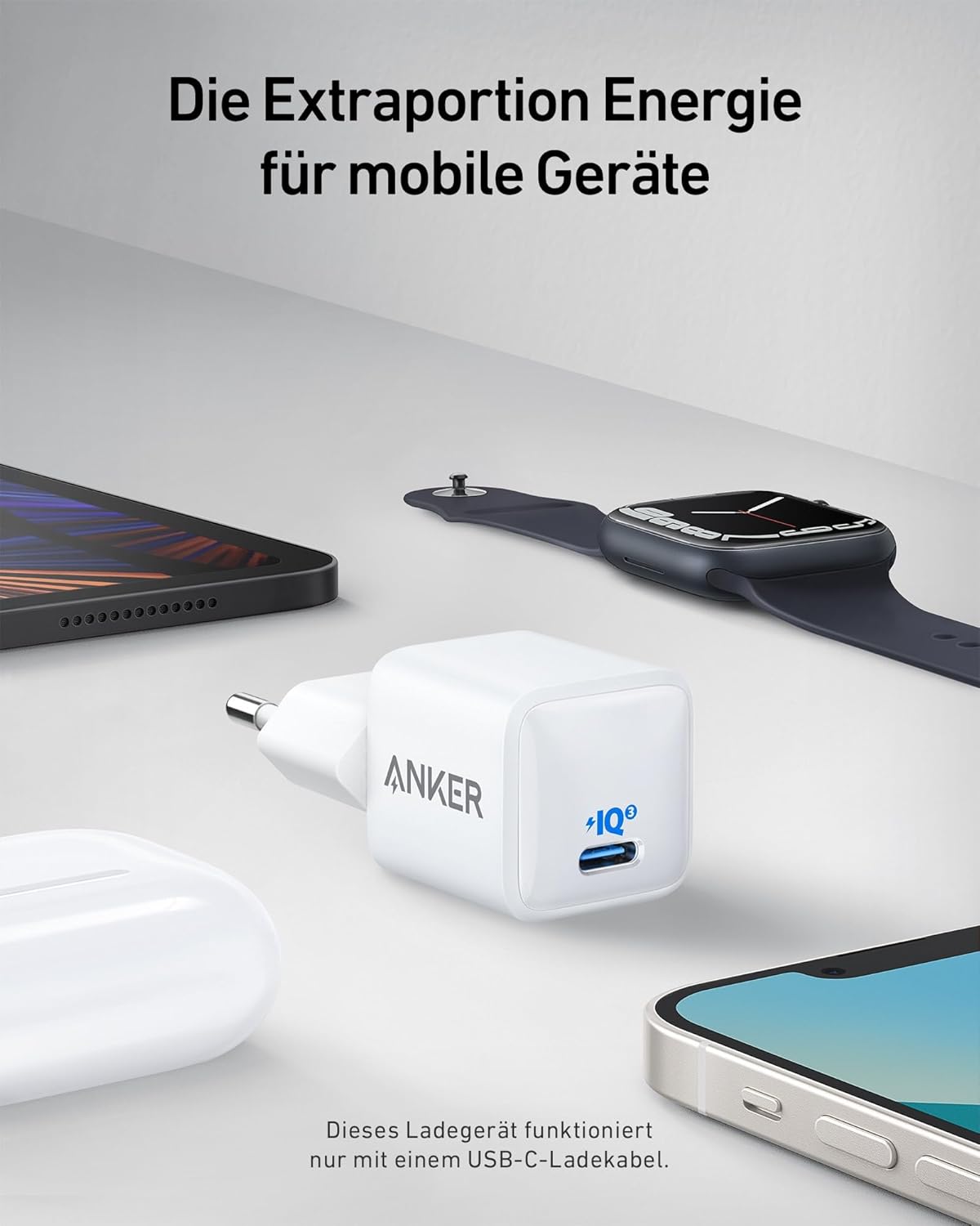 - Konzipiert für iPhone: Ankers Nano bietet mit seiner 20W Leistung maximale Ladegeschwindigkeit für das iPhone 15.