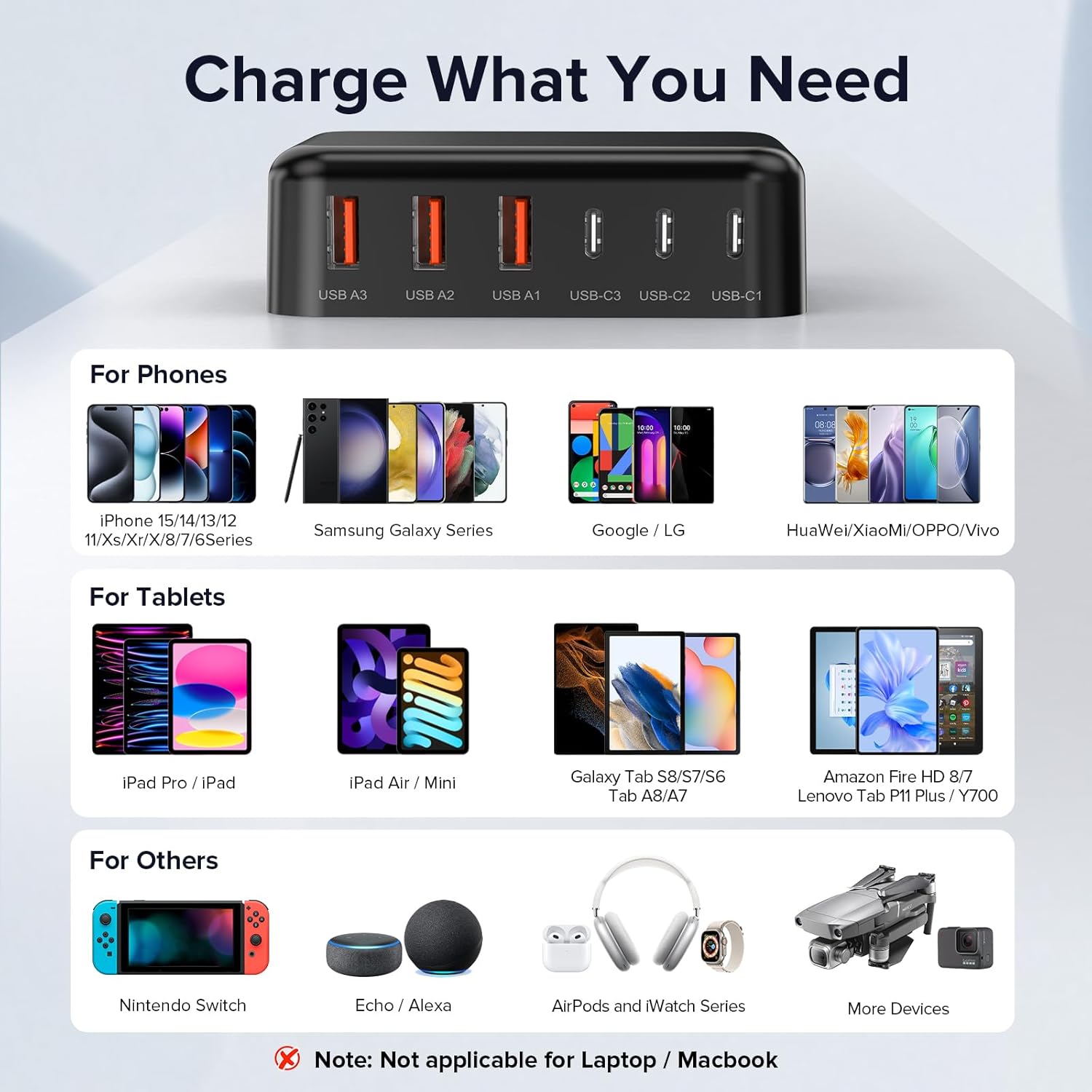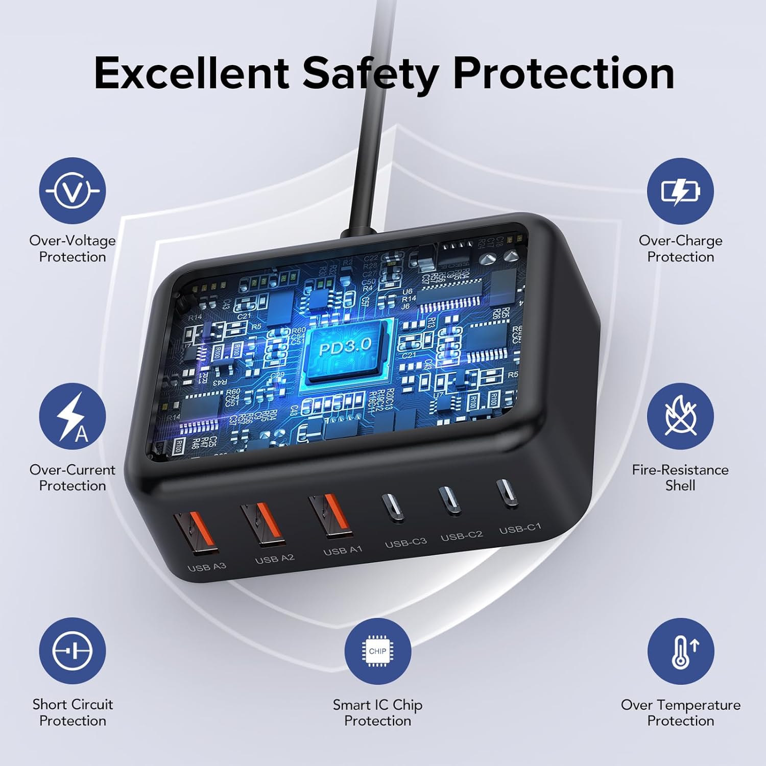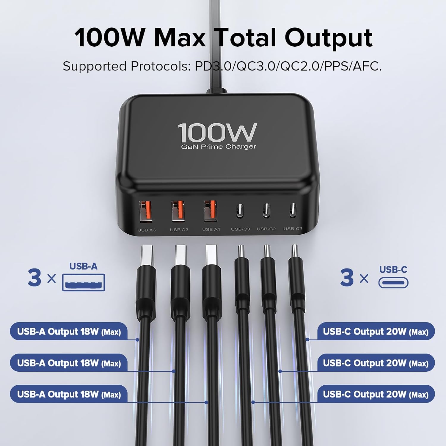 - ⚡⚡⚡⚡⚡【Was Sie bekommen werden】:100W 6-Port USB-C Ladegerät (Schwarz) mit einer 1.5m Wechselstromverlängerungskabel, 12 Monate sorgenfreien Austausch und 24/7-Kundendienst. Unser Produkt legt Wert auf Ihr Einkaufserlebnis. Wenn Sie also