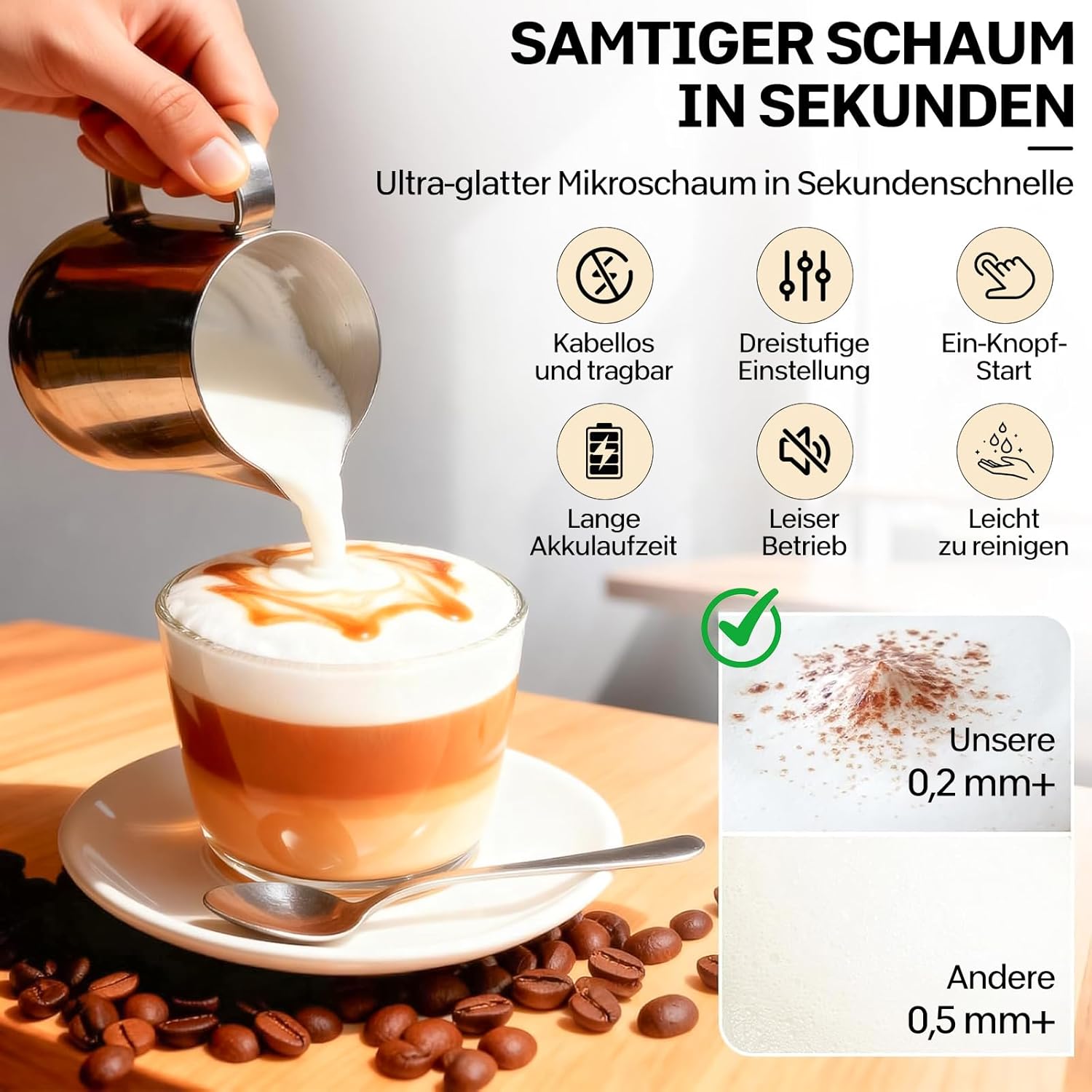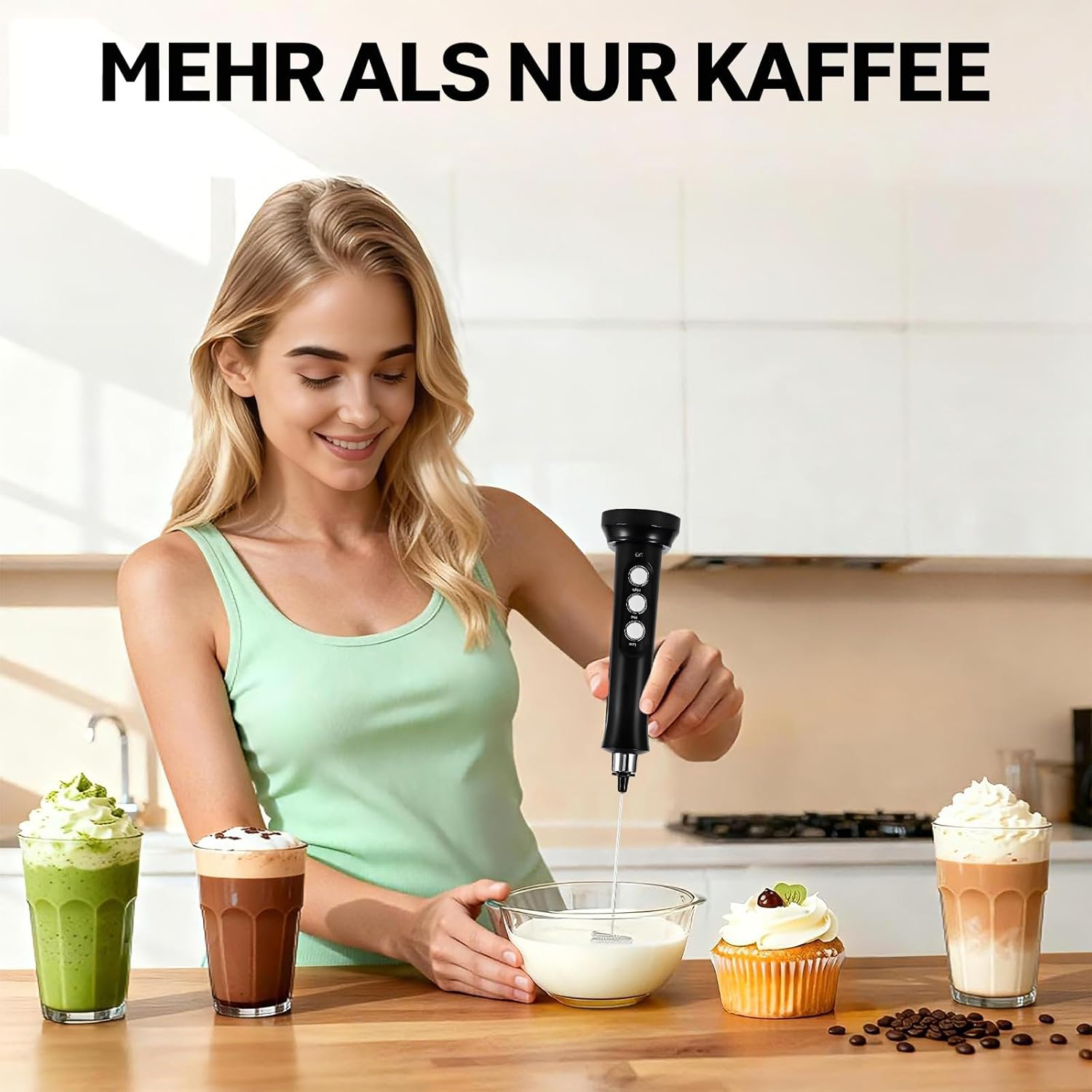- Macht Mehrere Getränke: Ausgestattet mit einem leistungsstarken Motor (3500/8500/13500rpm) und einem niedrigen Geräuschpegel, kann dieser elektrische Milchaufschäumer reichen, cremigen Schaum für Latte, Cappuccino, Macchiato und heisse Schokolade in