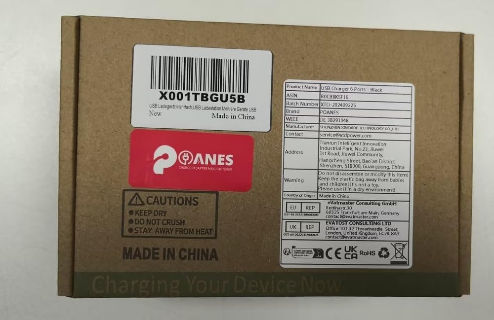 - Intelligentes Laden;Dieses Multi-USB-Ladegerät verfügt über 6 Anschlüsse und jeder Anschluss kann bis zu 2,4 A ausgeben, mit einem Maximum von 4 A über alle Anschlüsse hinweg. Es kann an jedem Port angeschlossene Geräte automatisch erkennen und
