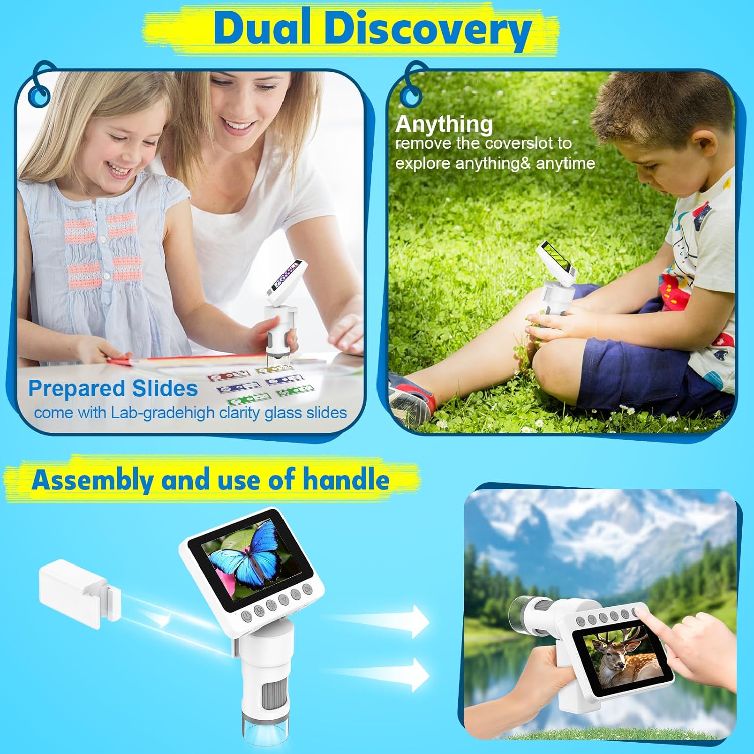 - Tragbare und praktische Designs – Nehmen Sie Ihre Neugier überallhin mit: Taschenmikroskope und tragbare Lupen sind ideal für Outdoor-Abenteuer. Kompakte Modelle wie das Mini-Reisemikroskop oder Hand-Digitalmikroskope überzeugen mit Funktionen wie