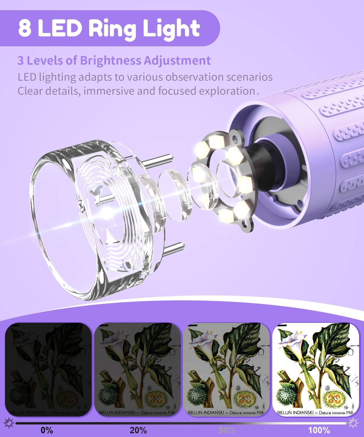 - 【Einstellenbare LED-Beleuchtung】Mit 8 LED-Lichtern und einer 3-stufigen Helligkeitsregelung bietet dieses tragbare Digitale Mikroskop mit Bildschirm den Benutzern optimale Beleuchtung für verschiedene Beobachtungen. Im Garten beleuchtet es die