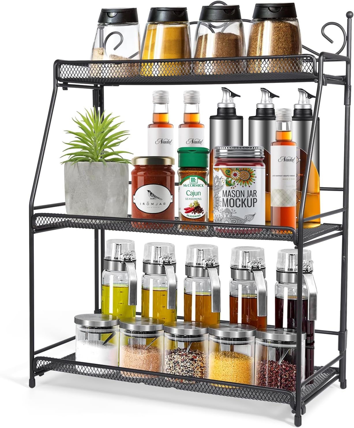- 【Praktisches Design】 Obwohl kompakt im Design, bietet Ihnen dieses Küchenregal so viel zusätzlichen Platz! Das 3-lagige Design und seine hervorragende Lagenhöhe machen dieses Lagerregal nicht nur zum Gewürzglas, sondern auch zum Aufbewahren