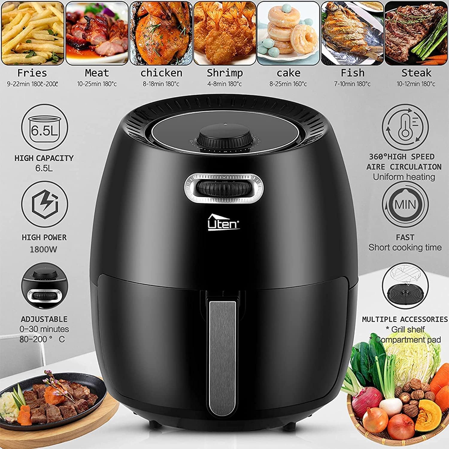 - Einfach und praktisch, das ist es, was Uten ausmacht. Mit ihrem minimalistischen Design bringt diese Fritteuse nicht nur Luxus in Ihre Küche, sondern ist auch sehr einfach zu bedienen. Mit einer Vielzahl von Funktionen wie Garen, Backen, Kochen, Braten und Frittieren behält sie den Geschmack und die Konsistenz einer herkömmlichen Fritteuse bei, so dass Sie Ihre Lieblingsspeisen auf eine gesündere Art und Weise zubereiten können, was den Kochvorgang sowohl einfach als auch effizient macht.