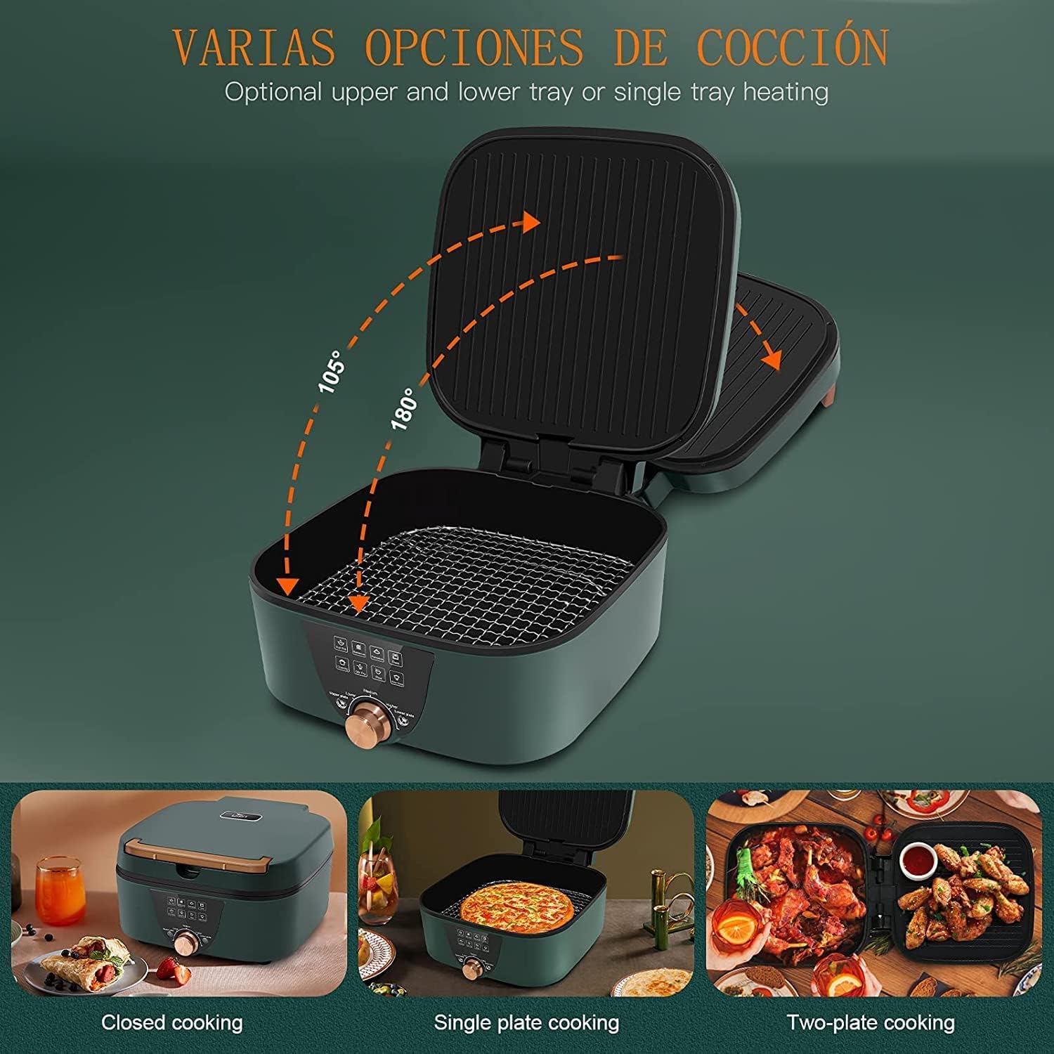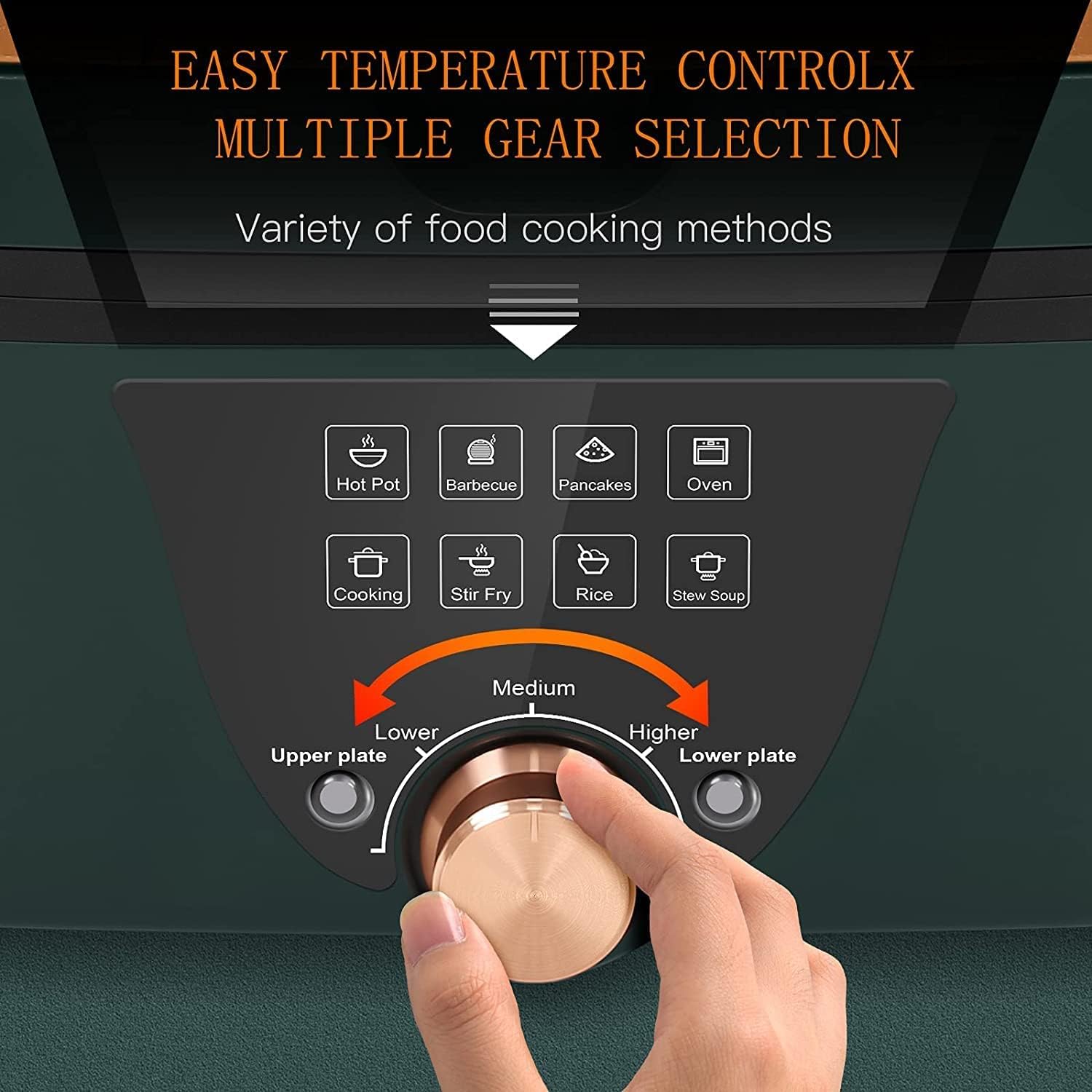 - 【 Unabhängige Temperaturregelung 】 Der Grill hat eine unabhängige Temperaturregelung, die Leistung ist in 3 Stufen einstellbar und das Hochleistungsheizrohr heizt schneller und gleichmässiger auf.