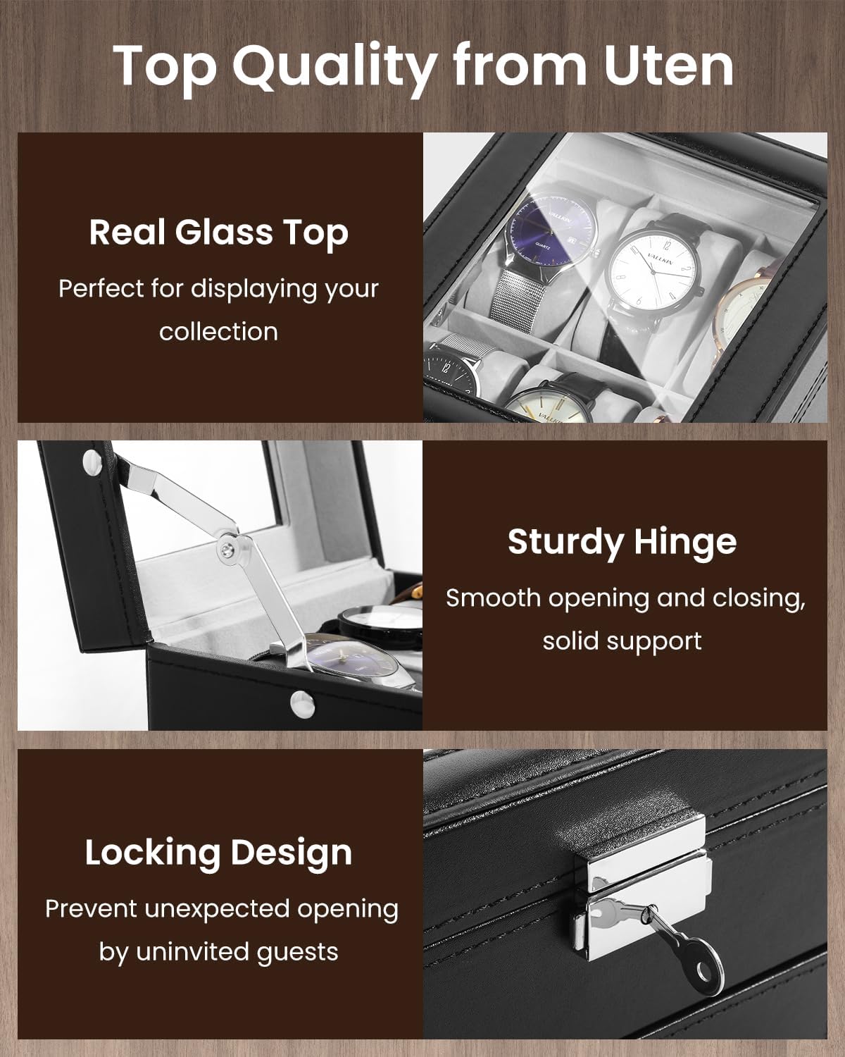 - 【Grosse Glasabdeckung】Transparentes sichtglas, das ihre uhrensammlung deutlich zeigt, verhindert, dass die uhr staubt, und ihnen hilft, die uhr schnell zu finden