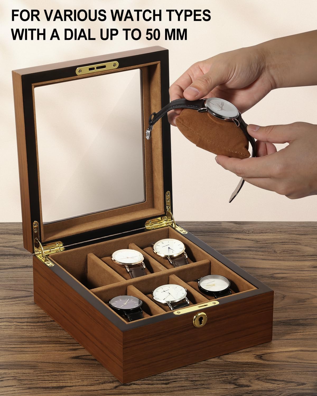 - 【Exquisite Design】 Dank hochwertigem Holz, weichem Innenfutter und klaren Fenstern sorgt diese Uhrenkasten dafür, dass Ihre Uhren und andere Schmuck immer im Blick bleiben und besser organisiert sind. Die Unterseite der Uhrenbox ist mit Flanell