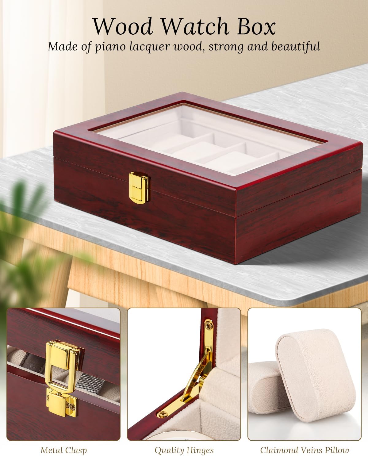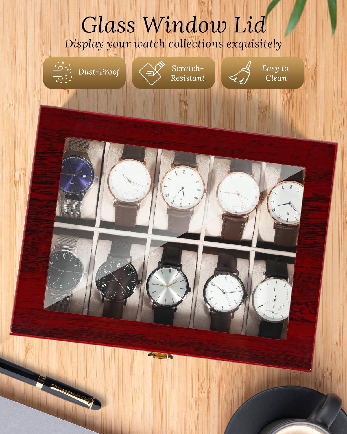 - 【Klar Display & beste Geschenke】:Dieses uhrenkasten verwenden hochwertige Klarglas auf der Oberseite, es ist Anti-Flecken und nicht leicht zu brechen. Es zeigt perfekt Ihre Uhren und Schmuckstücke. es ist sehr bequem zu benutzen. Perfektes Geschenk