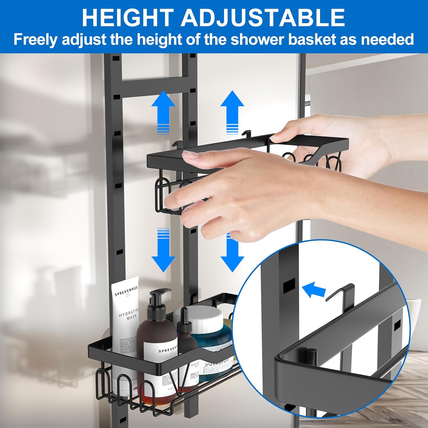 - 【Verstellbarer Stand】 Die höhe des duschkorb zum hängen kann nach belieben nach oben oder unten angepasst werden, da sich auf beiden seiten der duschhalterung saubere rechteckige löcher befinden. sie müssen den ablage dusche nur entsprechend der